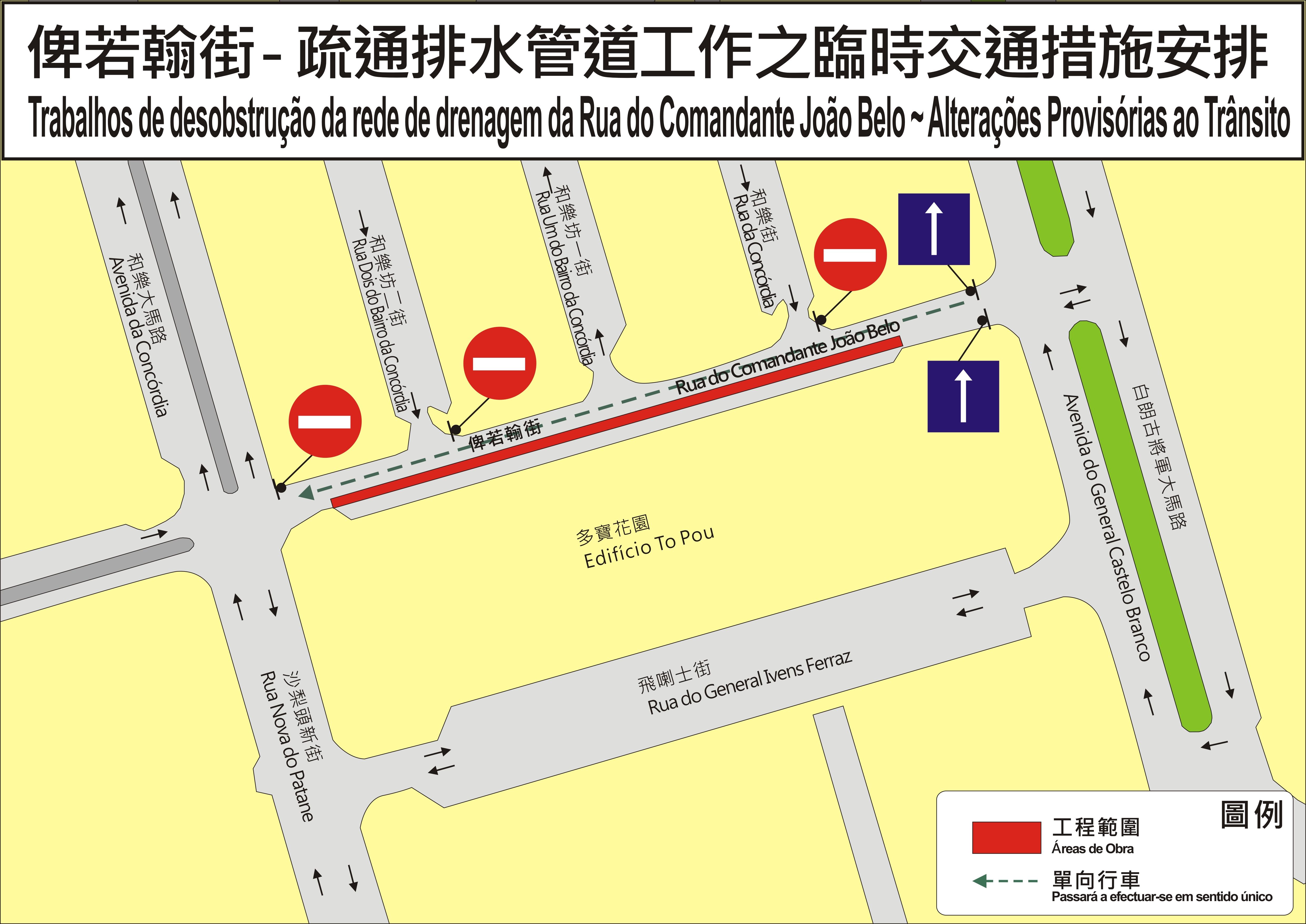 配合工程需要,介乎白朗古將軍大馬路與沙梨頭新街之間的一段俾若翰街,本月12日(周五)至14日(周日)每日早上10時至下午5時改為單向通車,即車輛只能由白朗古將軍大馬路往沙梨頭新街方向行駛;前往白朗古將軍馬路的車輛可取道沙梨頭新街轉入飛喇士街。