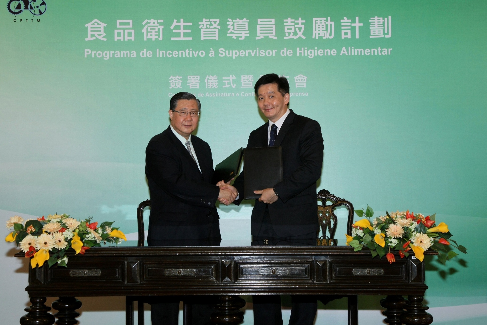 民政總署委託澳門生產力暨科技轉移中心開辦食品衛生督導員課程,於六月三十日在民署大樓舉行“食品衛生督導員鼓勵計劃簽署儀式暨發佈會”介紹計劃詳情,以及食品衛生督導員課程的主要內容。民政總署管理委員會主席黃有力、澳門生產力暨科技轉移中心理事長孫家雄,在本澳食品業界代表的見證下簽署合作培訓備忘錄,共同為本澳食品業界提供更多培訓資源,促進行業升級。