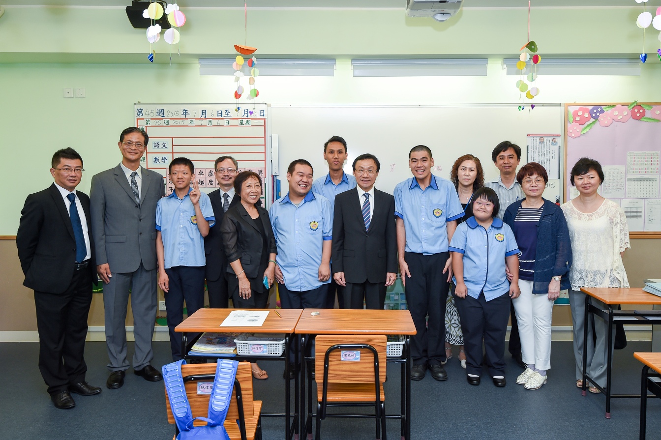 譚俊榮司長一行在路環中葡學校校長鄭國卿,教師陳嘉燕、黎就卿等陪同下,考察該校物理治療室、多感官學習室、電腦教學室、家居室及多間課室,仔細察看校内無障礙設施,並與該校教師、專業治療師及輔助人員等深入交談了解工作情況,聆聽教學與治療中存在的困難。對全校教職員工不辭辛勞,奉獻特殊教育事業表示感謝及作出勉勵。