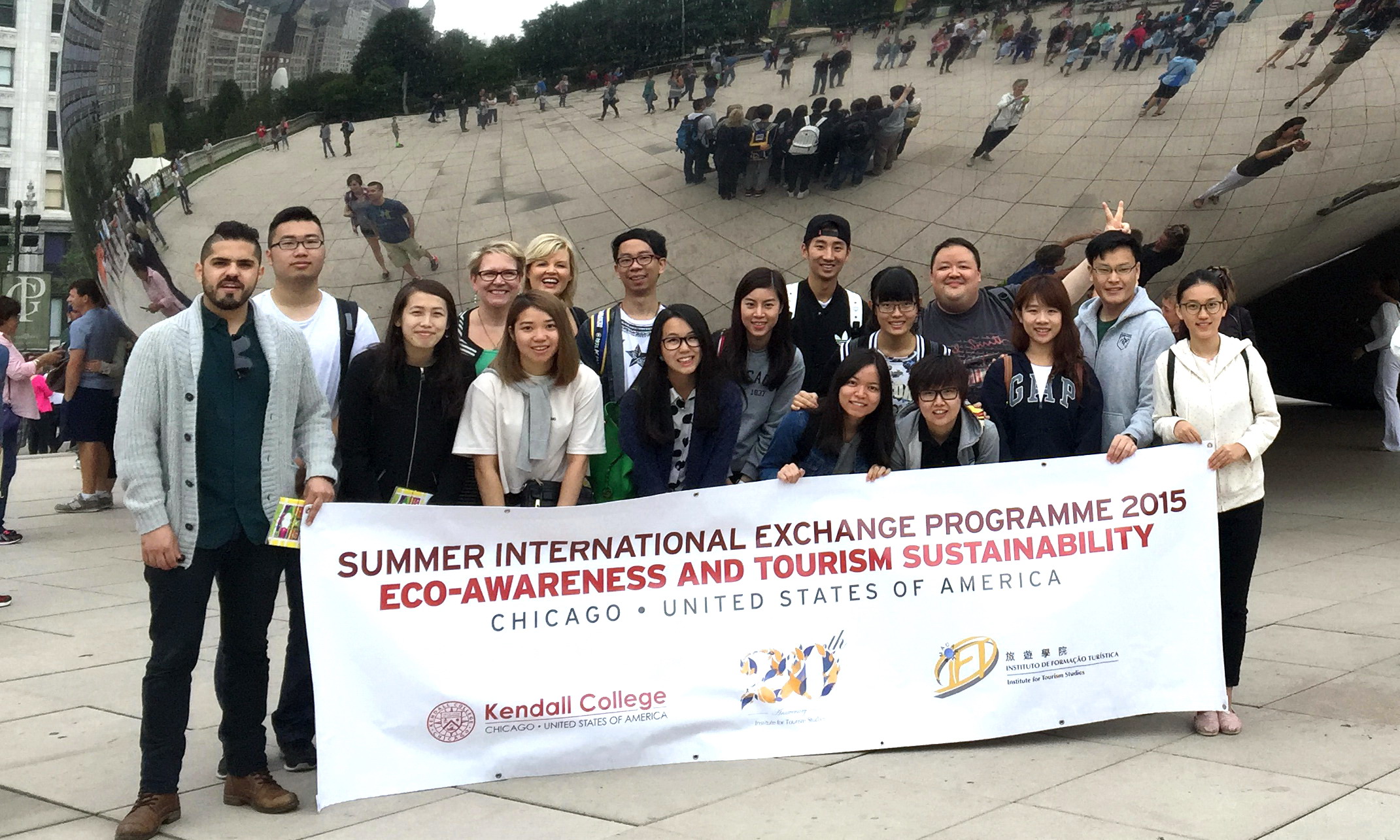 適逢20周年校慶,旅遊學院與肯代爾大學合作,將2015夏季國際交流課程帶到美國芝加哥。透過專題講座、工作坊及考察活動,13名於港澳高等院校就讀之本科學生深入認識了芝加哥市內的環保意識與綠化設施,以及其與當地旅遊業可持續發展的緊密關係;課程期間,他們亦獲安排與肯代爾大學學生和當地旅遊業界管理層人員進行交流,取得莫大裨益。