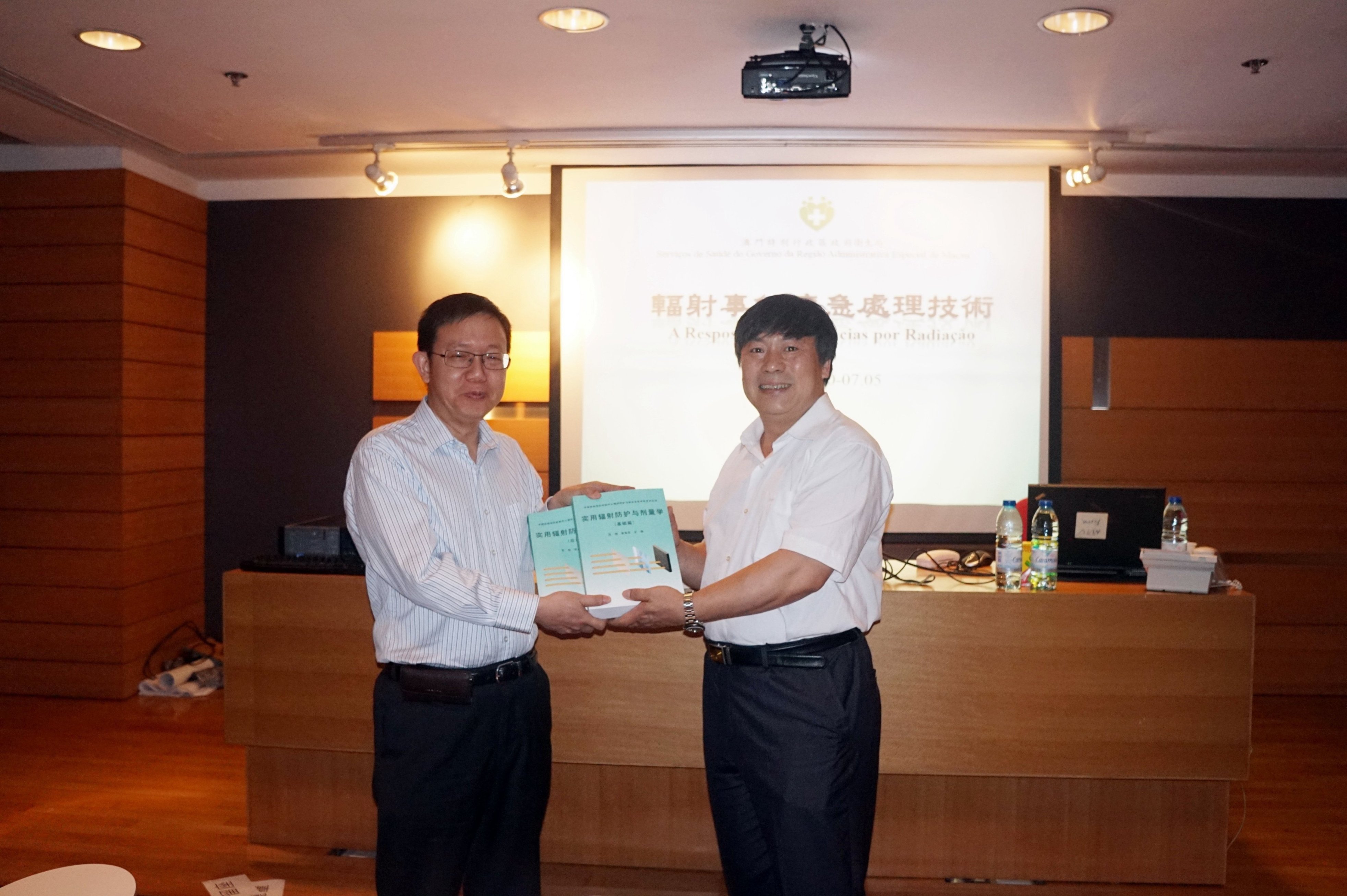 為進一步鞏固衛生局公共衛生團隊的核心能力,提升衛生範疇的應急處置能力,繼過去流行病學調查的培訓,衛生局繼續得到中國疾病預防控制中心的支持,邀請到「中國疾病預防控制中心輻射防護與核安全醫學所」蘇旭所長及侯長松主任於日前來澳,為衛生局人員進行了“輻射事件應急處理技術”培訓。