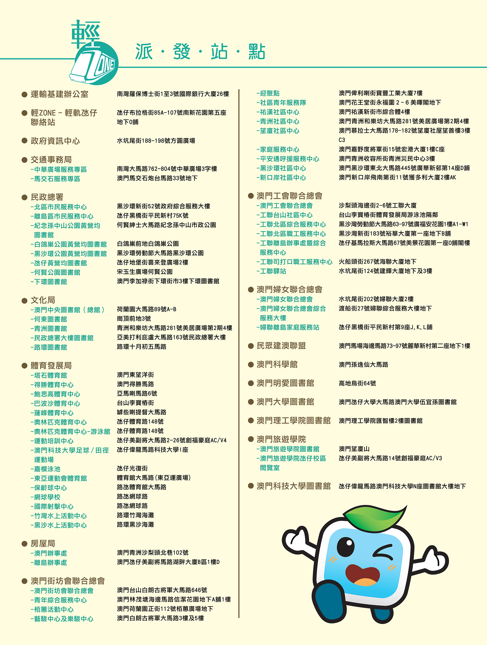 另外,由今期開始,《輕ZONE》已增設了房屋局和澳門科學館2個派發點,將更方便市民索取。閱讀《輕ZONE》,吸收澳門輕軌知識之餘,大家亦不要錯過“遊戲互動區”,隨時有機會獲得豐富獎品!