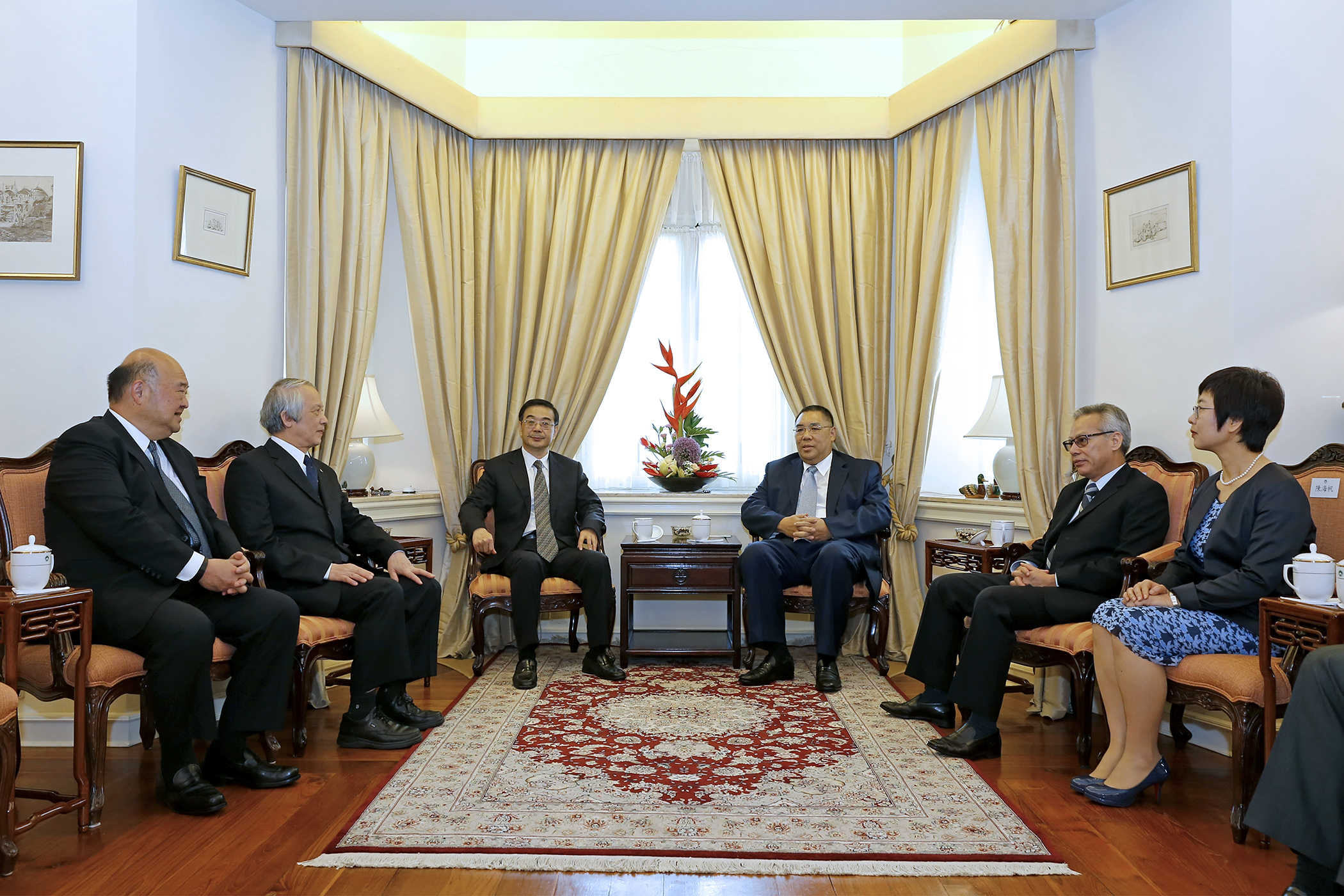行政長官崔世安今(27)日在禮賓府與來澳出席“第三屆海峽兩岸暨香港澳門司法高層論壇”的三方代表團長會面,一起就加強兩岸四地的司法合作等問題進行交流討論。
