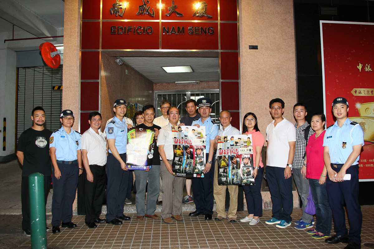 7月29日晚上,治安警察局聯同立法會議員宋碧琪、民眾建澳聯盟內的社區警務聯絡主任到新口岸區進行巡區宣傳活動,藉此與各大廈業主會及國際中心商戶互助會進行交流,了解新口岸區的治安及交通情況。接著到區內大廈派發「舉報不法」、「慎門戶 保安全」及「大廈管理員須知」等海報和宣傳單張,提升管理員及居民防盜意識,舉報不法的積極性。