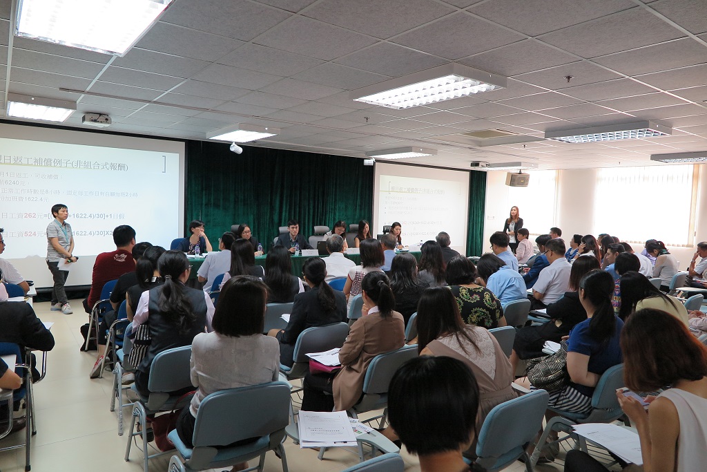 《物業管理業務的清潔及保安僱員的最低工資》法律將於2016年1月1日正式生效,為推廣及宣傳有關法律,勞工事務局於8月5日與澳門工會聯合總會合辦講解會,以及於8月7日為澳門物業管理業商會及澳門物業管理專業人員協會舉辦專場講解會,冀透過有關講解讓市民瞭解法律的內容及相關報酬的計算。