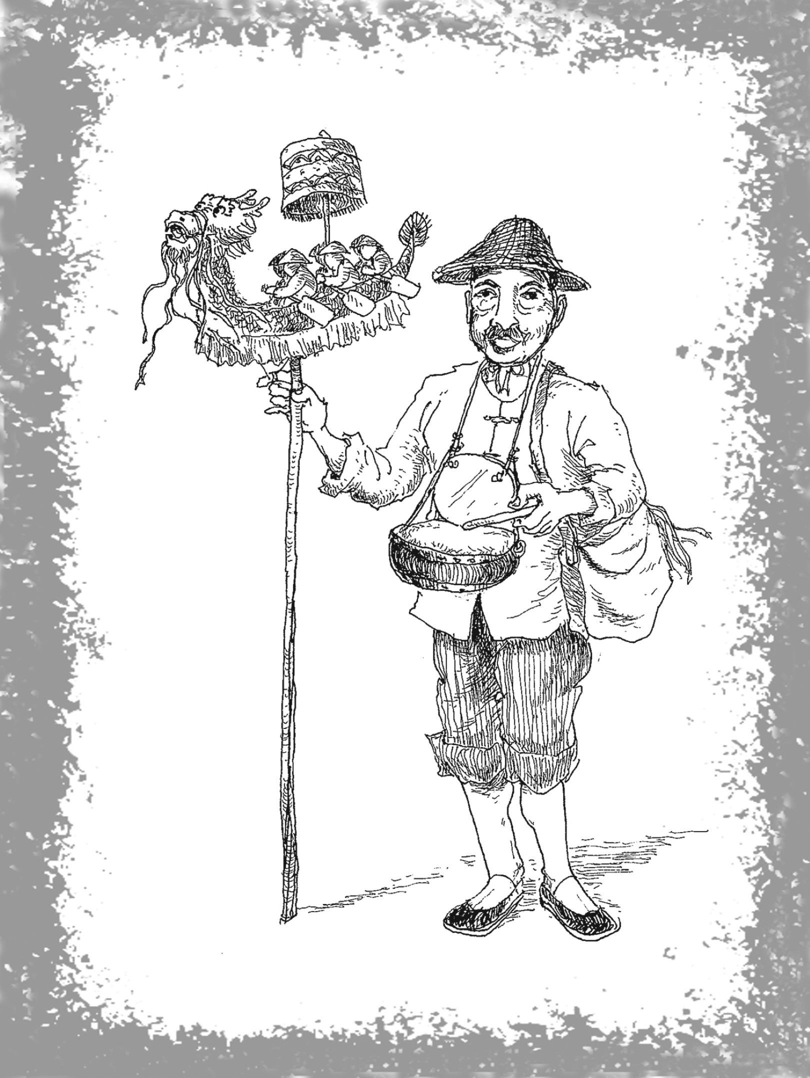 是次展出包括有《昔象今描》系列作品60幅,是上世紀中期澳門市民的生活動態;30幅為配圖的廣東話歇後語;此外還有針眨時弊、幽默風趣的漫畫、諺語、格言配圖及畫迷等,使觀眾在欣賞之餘,得到回憶與啟迪。