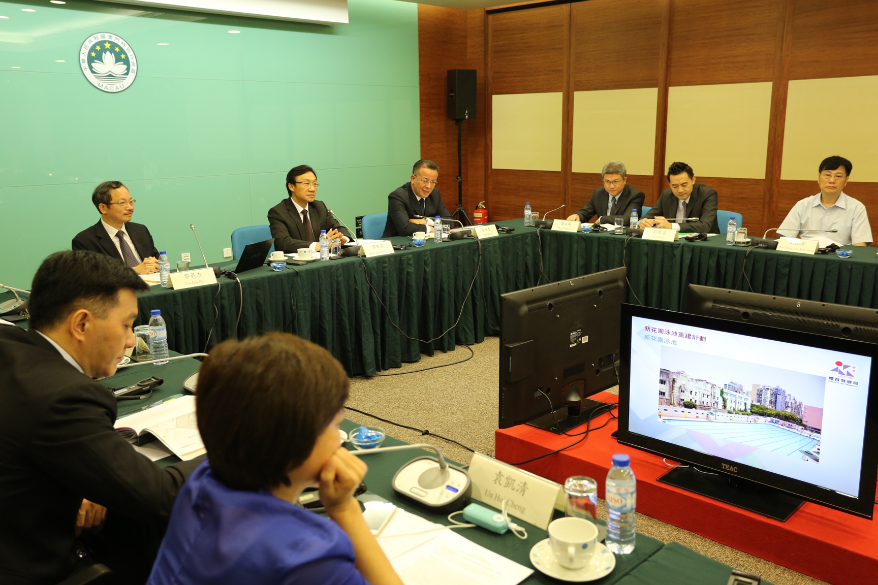 會上,先由社文司司長辦公室主任黎英杰介紹整體的規劃構想。體育發展局局長戴祖義介紹重建新花園泳池的初步構思,包括考慮設置全天候的標準及兒童游泳池,並創造更多空間開闢新的體育設施。