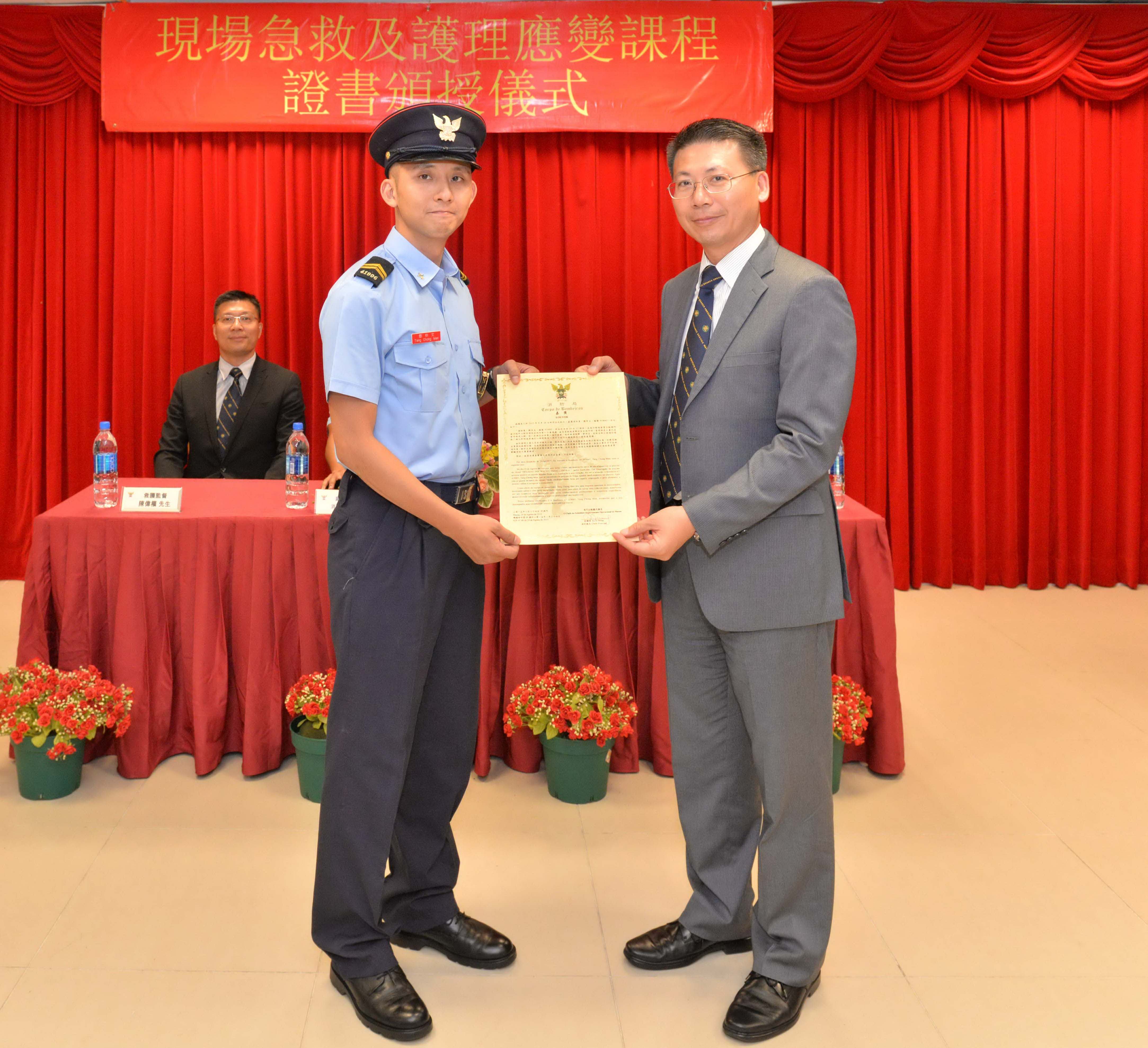 在課程的證書頒授儀式中,亦向一名消防員頒發嘉獎狀,以表揚其於本年8月23日休班期間在路氹一酒店泳池中拯救一名遇溺小童。由於當時情況危急,小童一度没有呼吸心跳,該名消防員立即參與救助,經急救後,小童恢復意識。該名消防人員在是次事件中能迅速、冷靜及專業地進行救助,充份表現消防人員的專業精神。