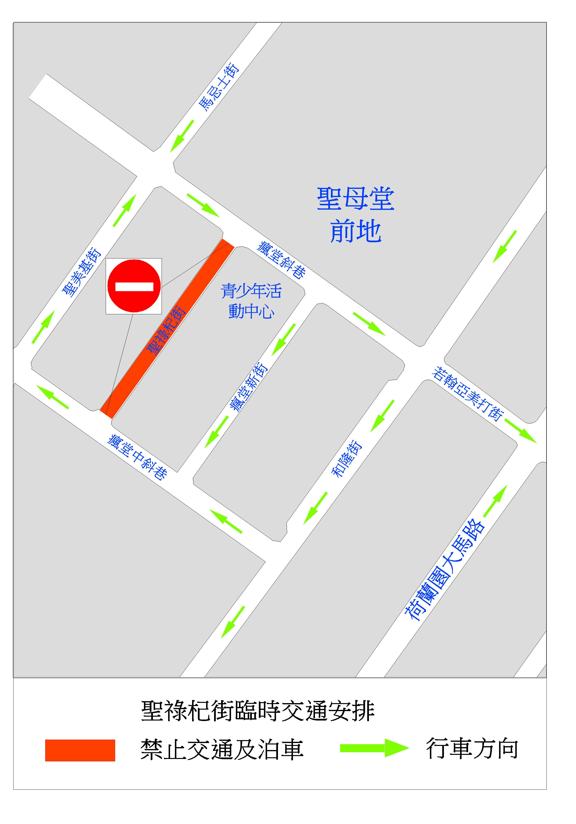 配合望德堂區創意產業促進會舉辦活動,由10月3日至12月27日每逢周六及日下午2時至晚上9時,介乎瘋堂中斜巷與瘋堂斜巷之間的一段聖祿杞街會臨時封閉交通,禁止車輛進入。