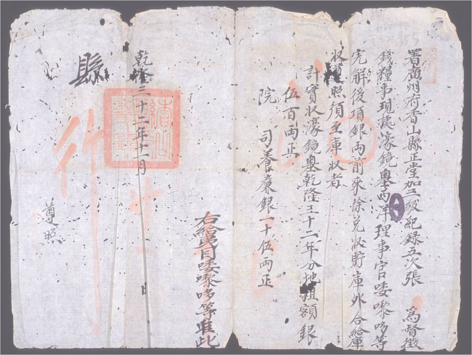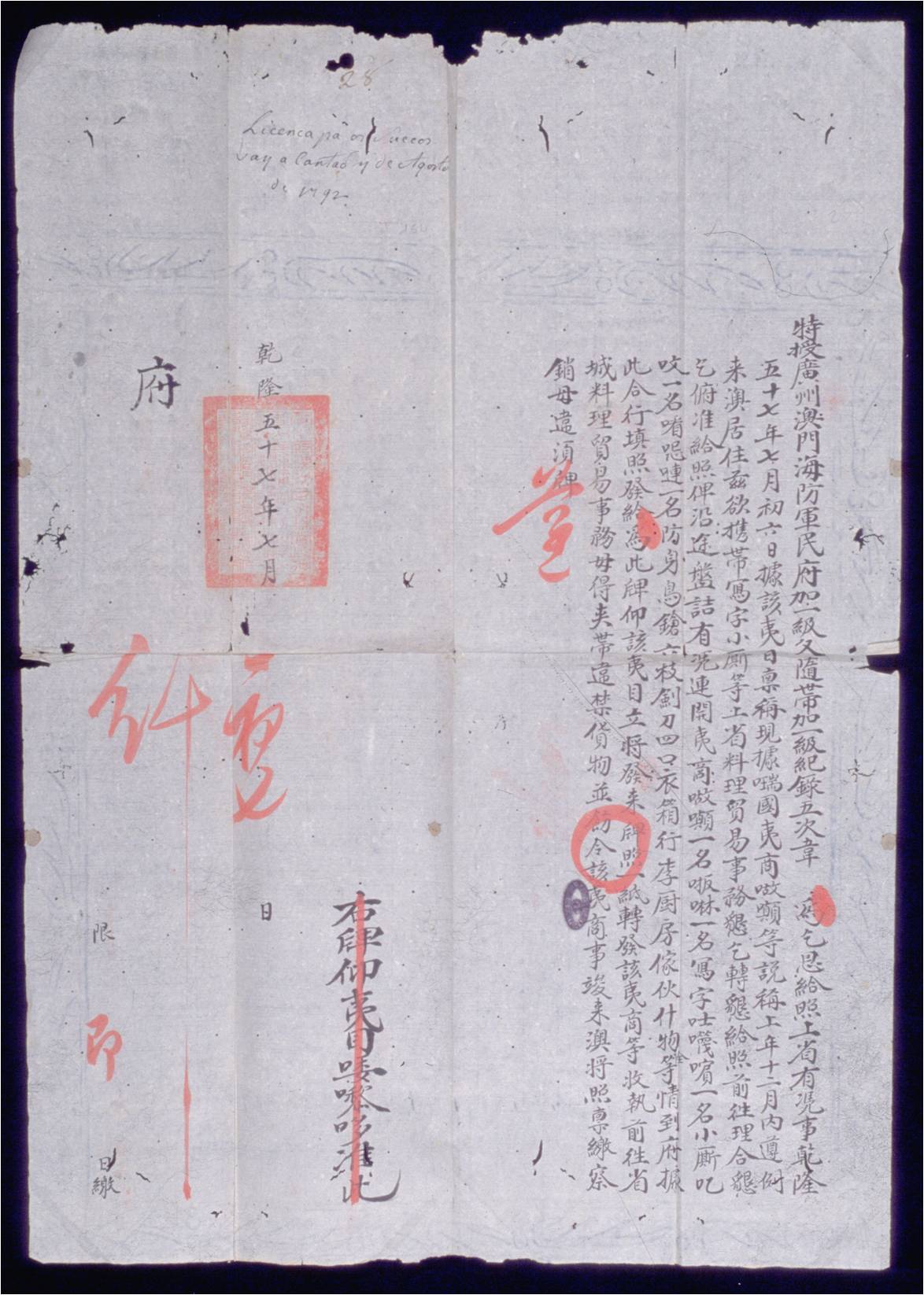 葡萄牙國家檔案館(Arquivo Nacional da Torre do Tombo,即葡萄牙東波塔檔案館)館藏清代澳門中文檔案,該檔案稱“漢文文書”匯集,由一千五百多多件中文文書、五冊澳葡議事會葡文譯本和四小包零散文件合共三千六百份檔案文書組成。這批檔案是清代的官、私中文文書,主要形成於十八世紀中葉以迄十九世紀中葉,即在中國清代乾隆朝初期到道光朝末期,間中亦有個別清末光緒朝的文書,其主體是澳門同知、香山知縣及縣丞等地方官員在行使中國對澳門管治權的過程中,與澳門議事會理事官之間文書往來所形成的檔案,就其形成來源而言,屬於清代檔案中的地方衙門檔案。