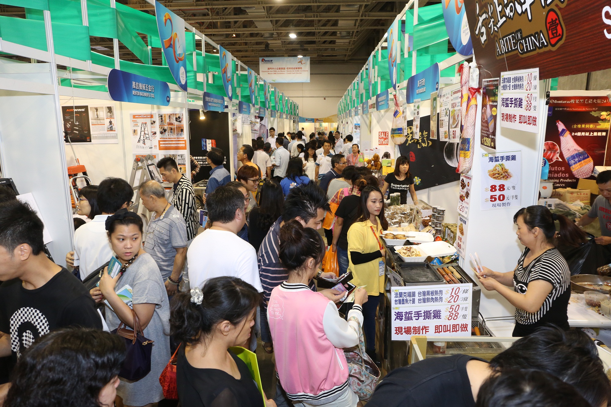 “第二十屆澳門國際貿易投資展覽會”(20th MIF)進入第三日。豐富節目及特色展區吸引眾多專業客商及買家參會。適逢週末,展會亦吸引了不少市民前來參與。展會第三日安排在配對洽談區的駐場採購商進行了約40場洽談及於簽約中心安排1份簽約項目。