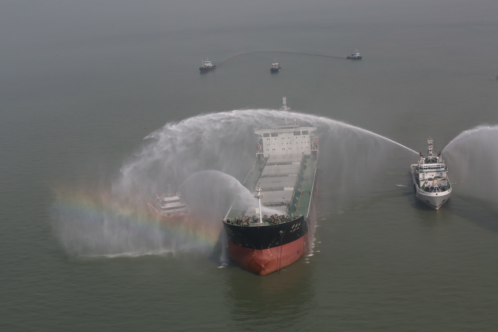 演習歷時一個半小時,各單位迅速對高速客船旅客進行安全轉移,同時透過海空力量確定四名落水人員的位置後,分別用固定翼飛機和直升機救起落水人員,重傷船員亦由直升機及時轉移救治。現場的消防船和清污船則指導船舶自救滅火及現場清污。最後,參演的船舶和飛機按照順序列隊接受了檢閱。