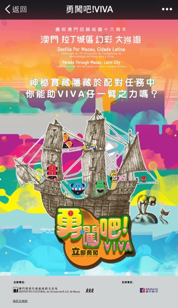 文化局近年積極開展多元訊息公佈平台及公共溝通渠道,以貼近市民所需,為加強與社會各界溝通,特別推出微信帳號(WeChat)並於即日起正式啓用,讓市民遊客可更便捷地獲取藝文活動資訊。該微信帳號現正舉辦《澳門拉丁城區幻彩大巡遊》“尋寶贏機票”有獎活動,參加者有機會贏取單人來回機票,歡迎參與。