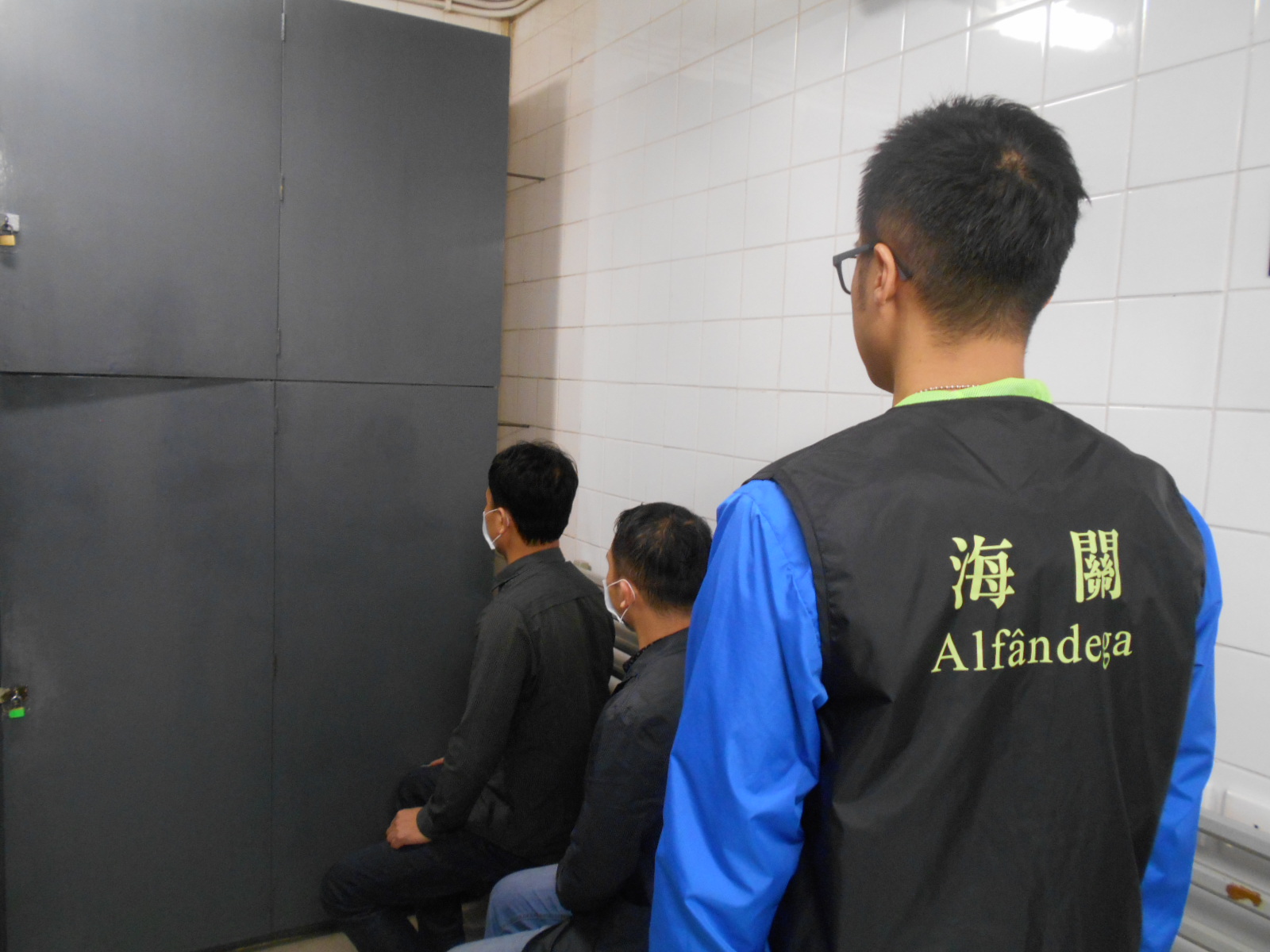 今日凌晨,海關關員在路環竹灣馬路巡邏時,發現4名可疑男子,遂上前查核身份,各人見狀突然四散逃跑。其後,關員成功攔截分別為41歲姓余湖北和44歲姓劉福建男子,他們聲稱較早時經珠海乘船偷渡來澳,剛剛上岸被關員拘捕。海關依法遣返上述人士,並繼續追查逃脫2男下落。