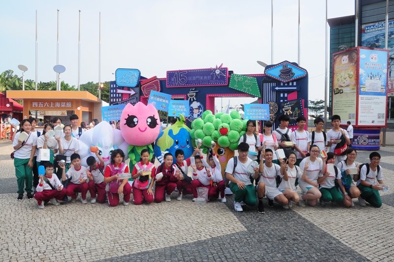 環境保護局藉著“第十五屆澳門美食節”期間舉辦“環境保護局吉祥物與您暢遊美食節”活動,組織“綠色學校”約40位師生及家長參加,推動年青一代身體力行實踐環保行為,以身作則,提醒大家享用美食之餘亦不忘環保。
