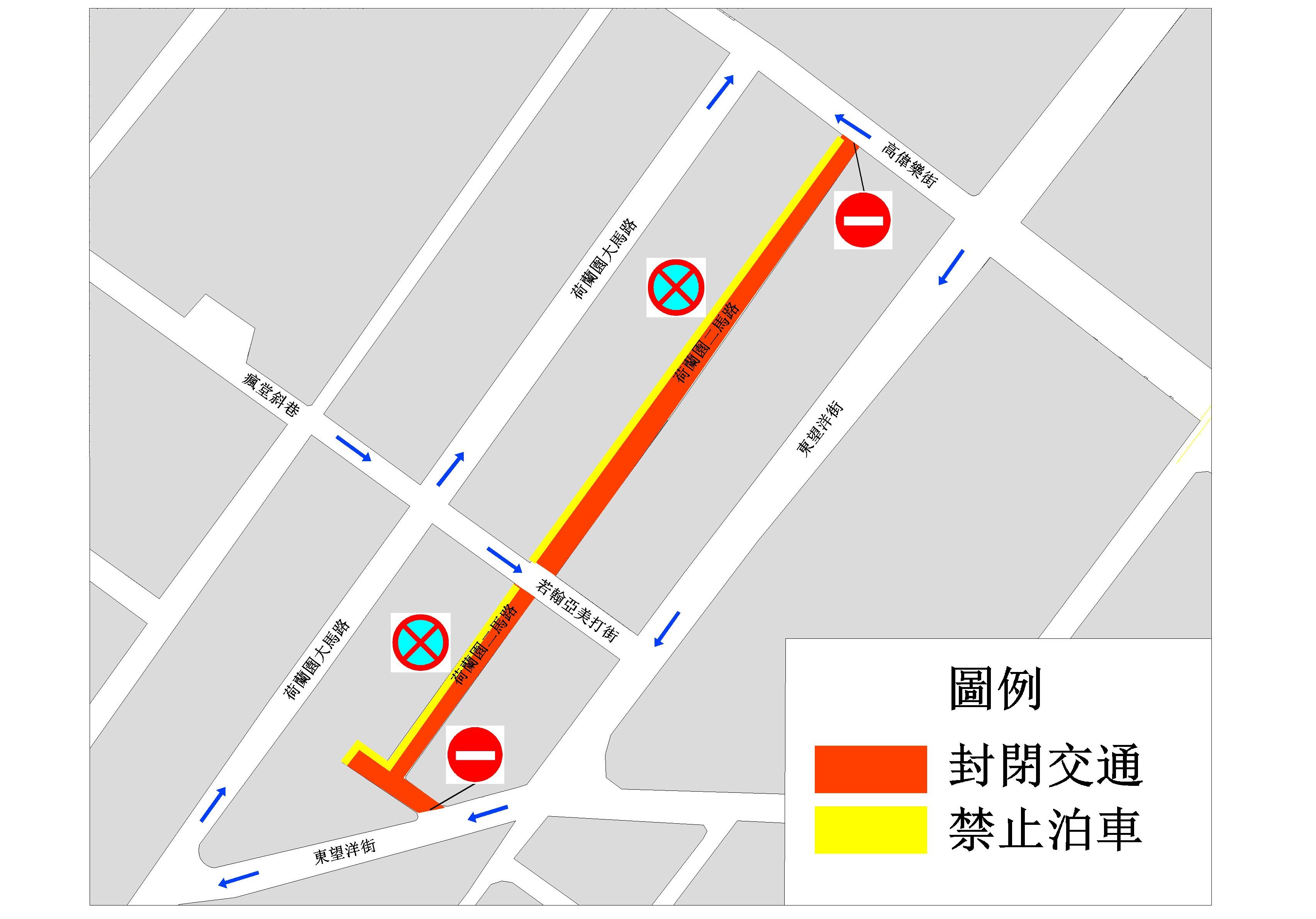 配合泰國文化節活動舉行,本月27日(周五)上午9時至29日(周日)晚上12時,荷蘭園二馬路實施臨時交通安排,禁止車輛停泊;上述路段並於本月28日(周六)上午9時至翌日晚上12時實施封閉交通,禁止車輛駛入。
