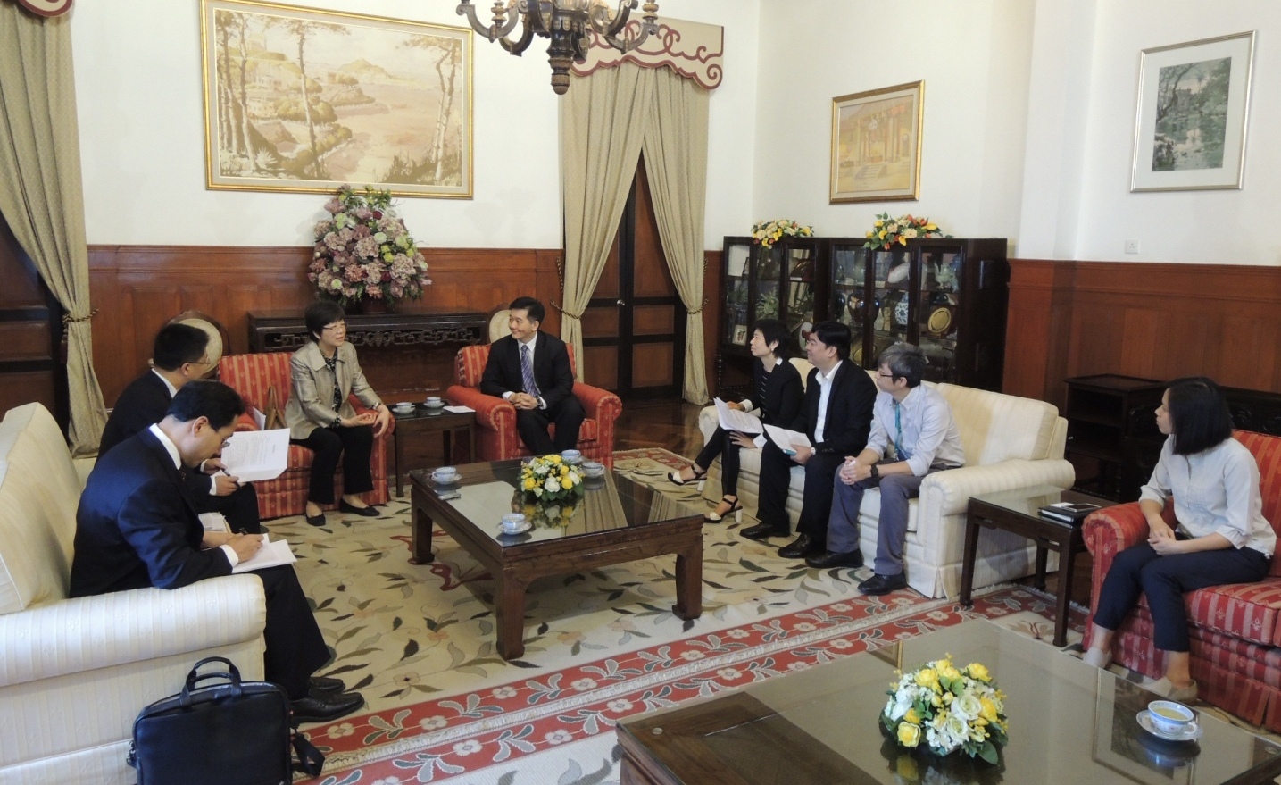 是次訪澳代表團由國家食品藥品監督管理總局副局長王明珠率領,成員包括國家食品藥品監督管理總局規劃財務司司長王小岩、港澳台辦公室處長靳松、規劃財務司處長孫繼龍等一行六人,於十一月二十四日拜訪民署與管理委員會主席黃有力、委員吳秀虹等進行會談。