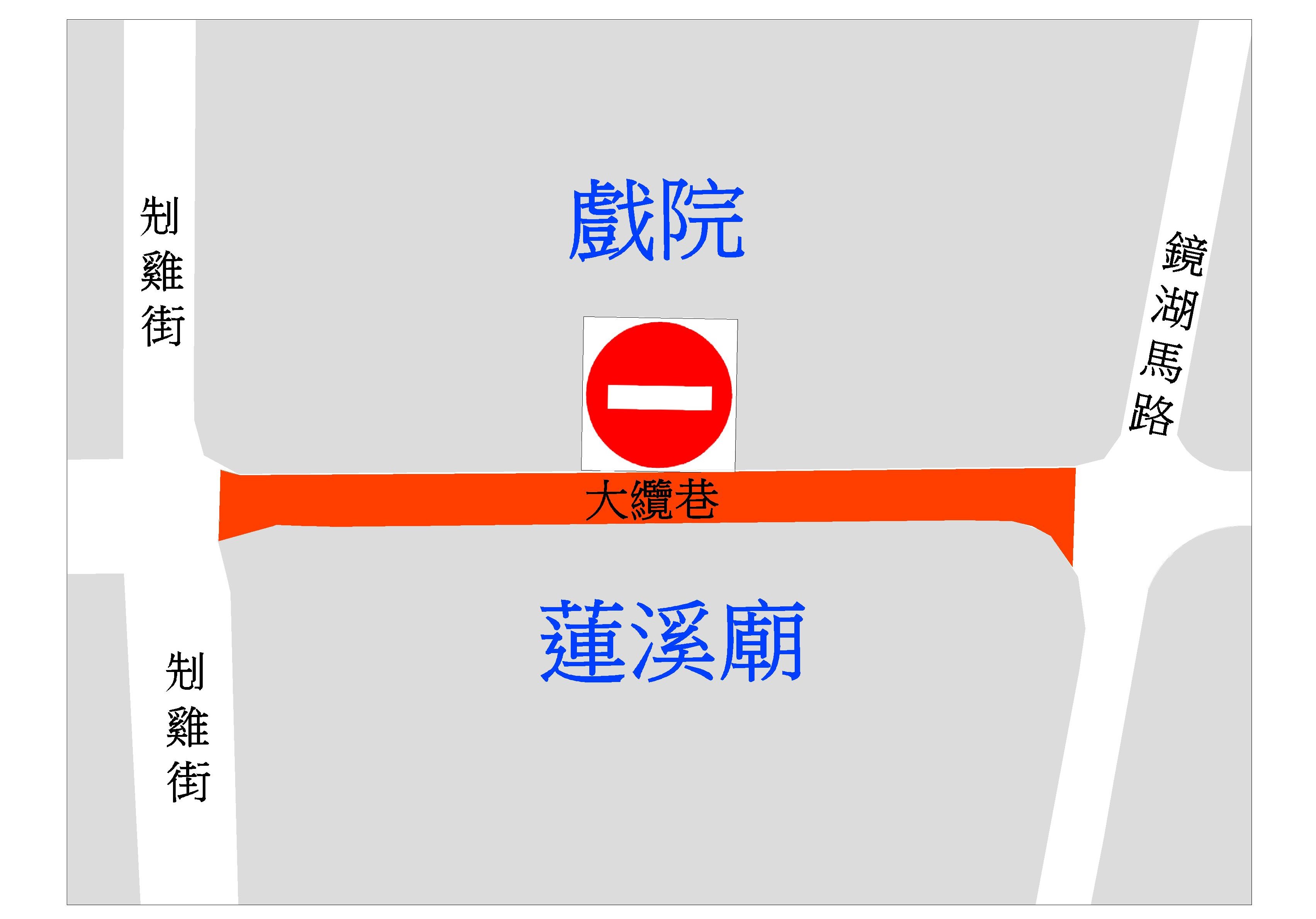新橋區多處道路本月18日(周四)起實施臨時交通管制,以舉行宗教及醒獅活動。當中,大纜巷、光復街及三盞燈部份路段需要封閉交通,交通事務局呼籲公眾留意。
