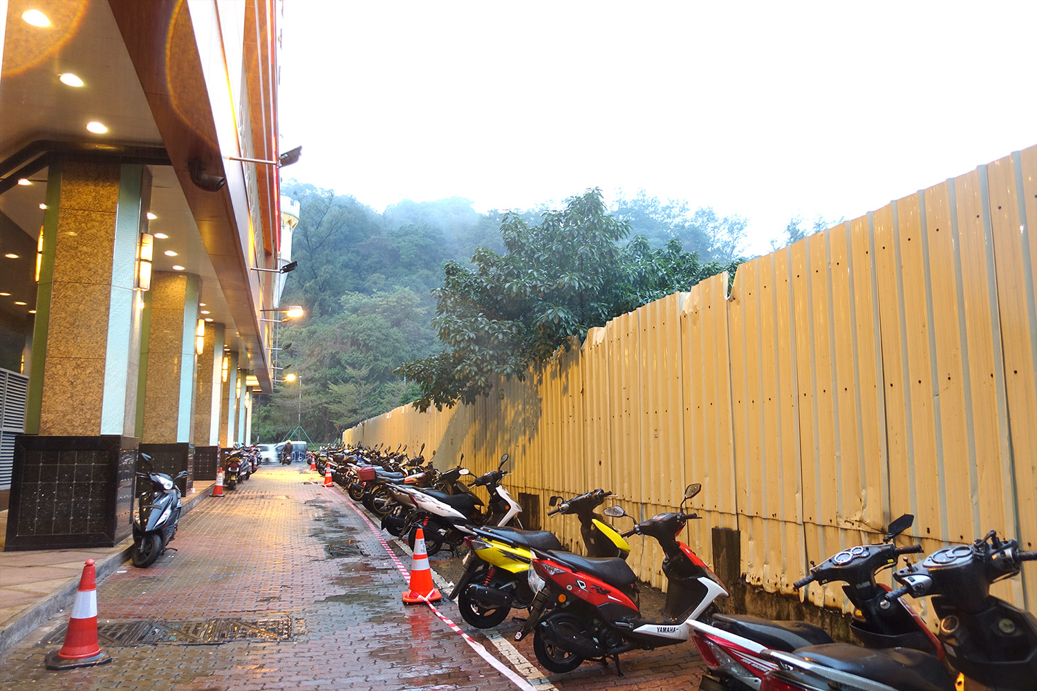 交通事務局接獲居民反映,由水塘馬路往羅理基博士大馬路方向經常有電單車經行車天橋駛至橋腳時突然減速,及後駛入皇家金堡酒店與栢力停車場之間的內巷停泊,容易導致尾隨車輛收制不及發生意外。經局方派員到場視察及了解,該小巷為一處緊急消防通道,並設有臨時性的電單車泊車區,然而現場屬繁忙路段,若電單車落橋後突然減速橫越行人路並駛入巷內,對尾隨車輛及行人構成一定危險。同時,考慮到巷內的消防安全,經綜合評估,該巷不適宜車輛通行。