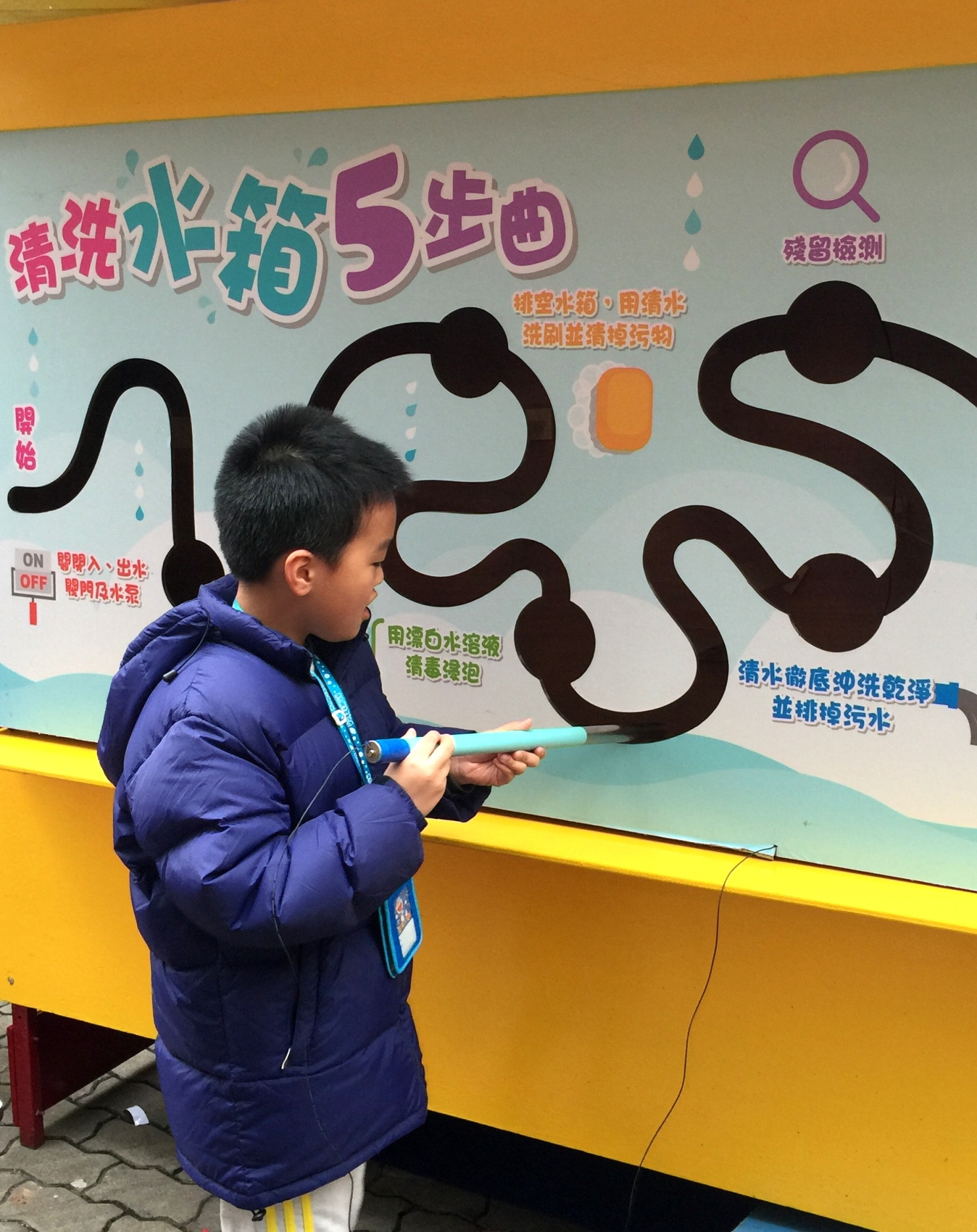 今日下午二時半至五時,小組假筷子基綠楊休憩區舉辦社區推廣活動,今年主題為“惜點滴,齊出力”,現場除了展出節水器具以及樓宇自來水系統模型,還設有多個以節約用水、認識鹹潮和維護管理樓宇自來水系統為主題的攤位遊戲和工作坊,透過輕鬆、互動、有趣的形式,介紹節約用水和維護樓宇自來水系統的方法。節水由點滴累積,教導從幼小開始,今年小組推出了校園節水宣傳劇《威水超人》,所以 “社區節水巡禮”活動以劇中角色和情節增設了《威水超人》主題遊戲,吸引了眾多家長和小朋友踴躍參與。