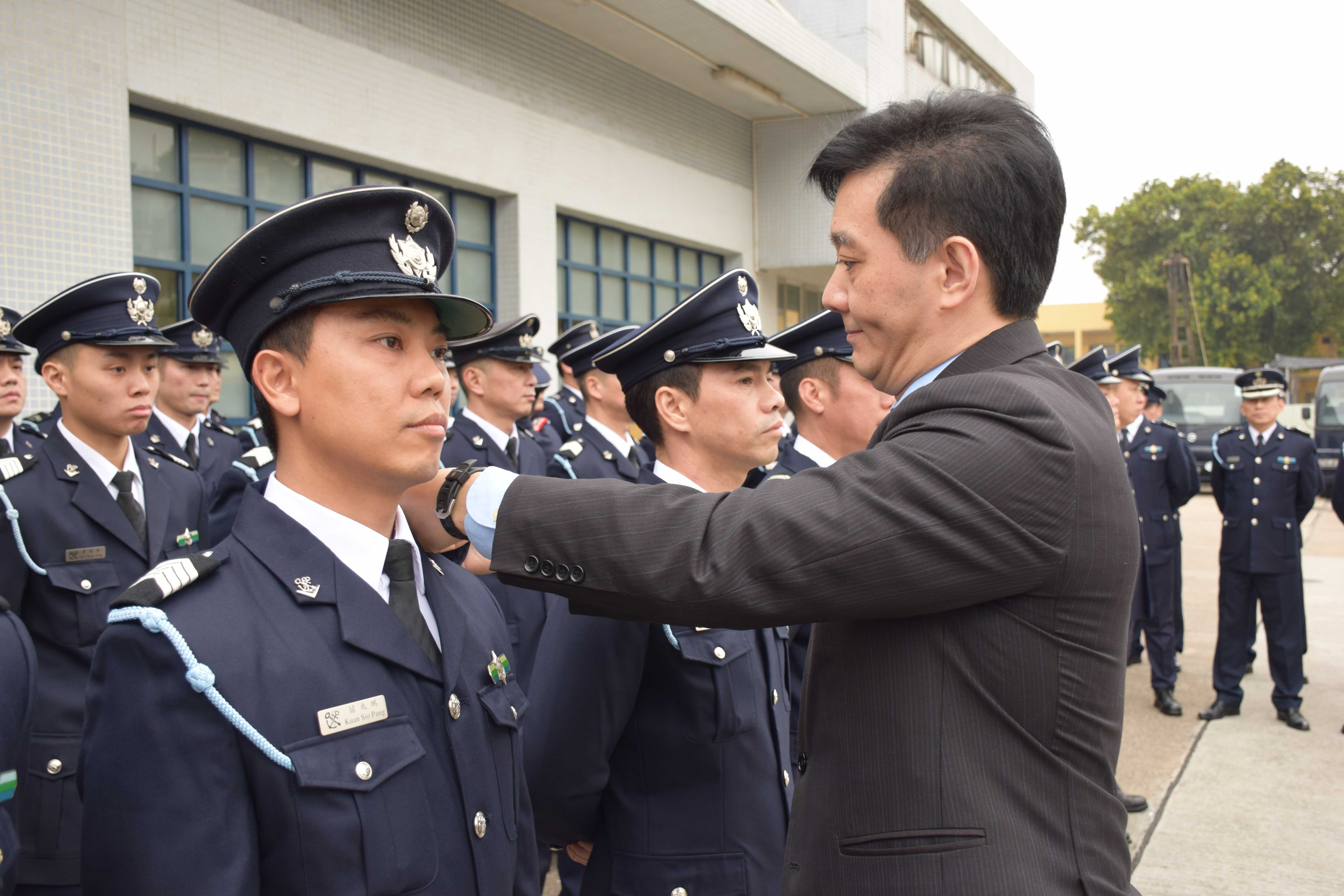 海關關長為晉升人員戴上新肩章