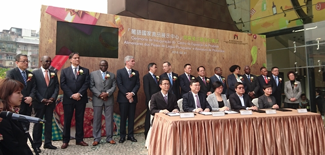 “葡語國家食品展示中心”開幕儀式暨簽約儀式於下午三時舉行,主禮嘉賓包括:澳門特區政府經濟財政司梁維特司長,商務部台港澳司孫彤司長,外交部駐澳特派員公署潘雲東副特派員,中聯辦經濟部寇明副部長,安哥拉聯絡員及安哥拉外交部亞大司司長撒母耳‧庫尼亞(Samuel Cunha),巴西聯絡員及巴西外交部中國與蒙古事務處處長奧蘭多‧雷特‧裡貝羅(Orlando Leite Ribeiro),佛得角駐華大使塔尼亞‧羅穆阿爾多(Tânia Romualdo),幾內亞比紹駐華大使馬嵐‧桑布 (Malam Sambú),莫桑比克聯絡員及莫桑比克外交合作部亞洲和大洋洲司司長貝爾米羅•若澤•馬拉特(Belmiro José Malate),葡萄牙駐華大使若熱‧托雷斯‧佩雷拉 (Jorge Torres Pereira),東帝汶駐華大使本迪杜‧弗雷塔斯(Bendito Freitas),葡語國家駐華使團團長(Joao Garcia Bires),澳門貿易投資促進局張祖榮主席,中國-葡語國家經貿合作論壇(澳門)常設秘書處常和喜秘書長及中華總商會賀定一副理事長。
