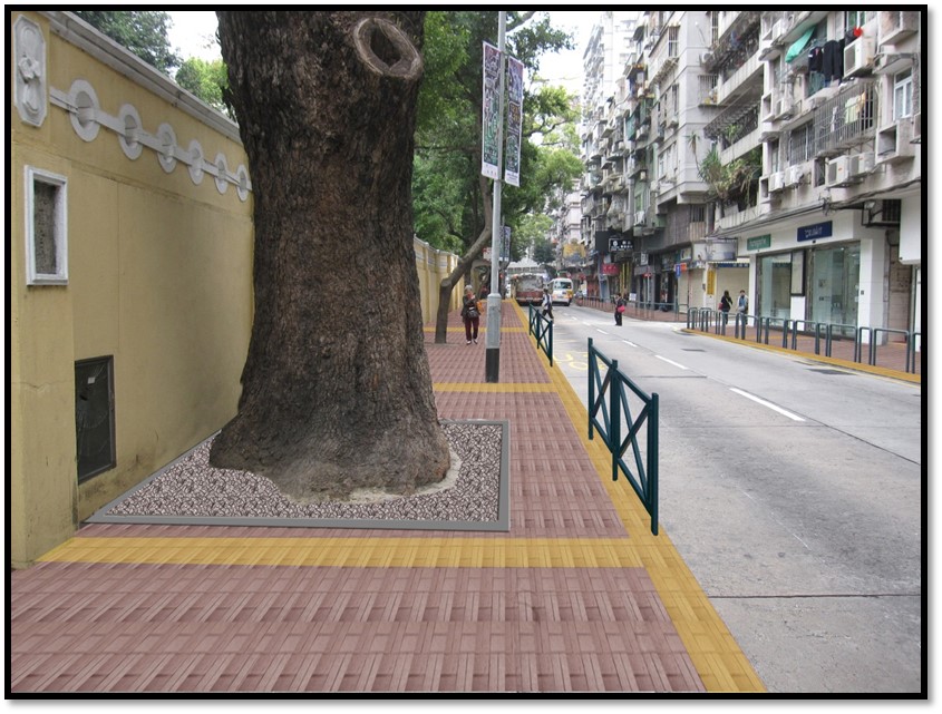 工程將於七月四日正式展開,七月一日起會先進行前期準備工作;為減少對交通的影響,將分兩階段進行。第一階段把行車方向右邊(即盧廉若公園對面)的行人道收窄、重鋪行車路面、調整集水井位置、並以透水磚重新鋪砌行人路面;第二階段工程會把靠近盧廉若公園圍牆一側的行人路擴闊一米、調整集水井位置、並以透水磚鋪砌行人路面。為避免重複開挖的情況,民署將安排專營公司一同進場鋪設地下管線。