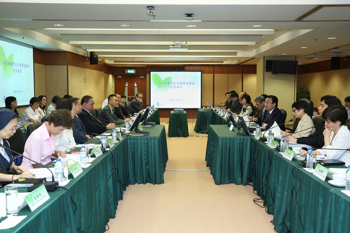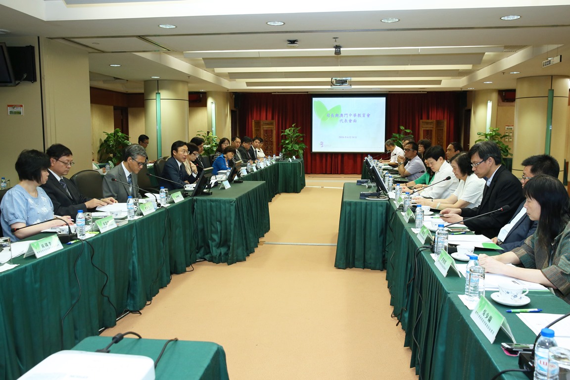 社會文化司司長譚俊榮率領教育暨青年局代局長郭小麗,副局長老柏生、代副局長黃健武和各主管人員,於6月中旬在教青局分別與澳門中華教育會和澳門天主教學校聯會的代表舉行會議,以加強與澳門教育界的溝通,就彼此關心的議題交換意見。