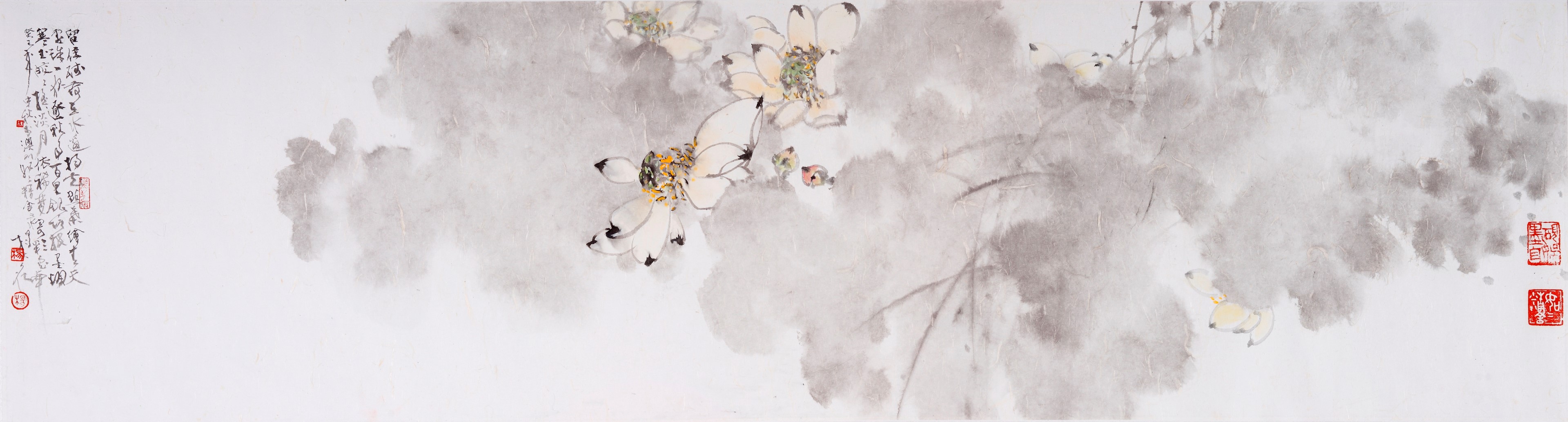 最近兩年,楊大名把他的荷花帶到了法國巴黎,參加了法國國家美術協會主辦的年度國際藝術盛事“巴黎國際藝術沙龍展”,以中國水墨畫作品《荷夢》獲得繪畫金獎,成為繼2012年中國美術家協會副會長何家英之後第二位,也是澳門第一位獲得該獎項的中國畫家。荷花是澳門的區花,楊大名筆下的荷花欣欣向榮、生機勃勃、無懼風雨、出塵脫俗,寓意澳門的繁榮景象。作品既表達了對澳門的深厚感情,更承載著民族情懷,反映祖國發展的時代氣息。