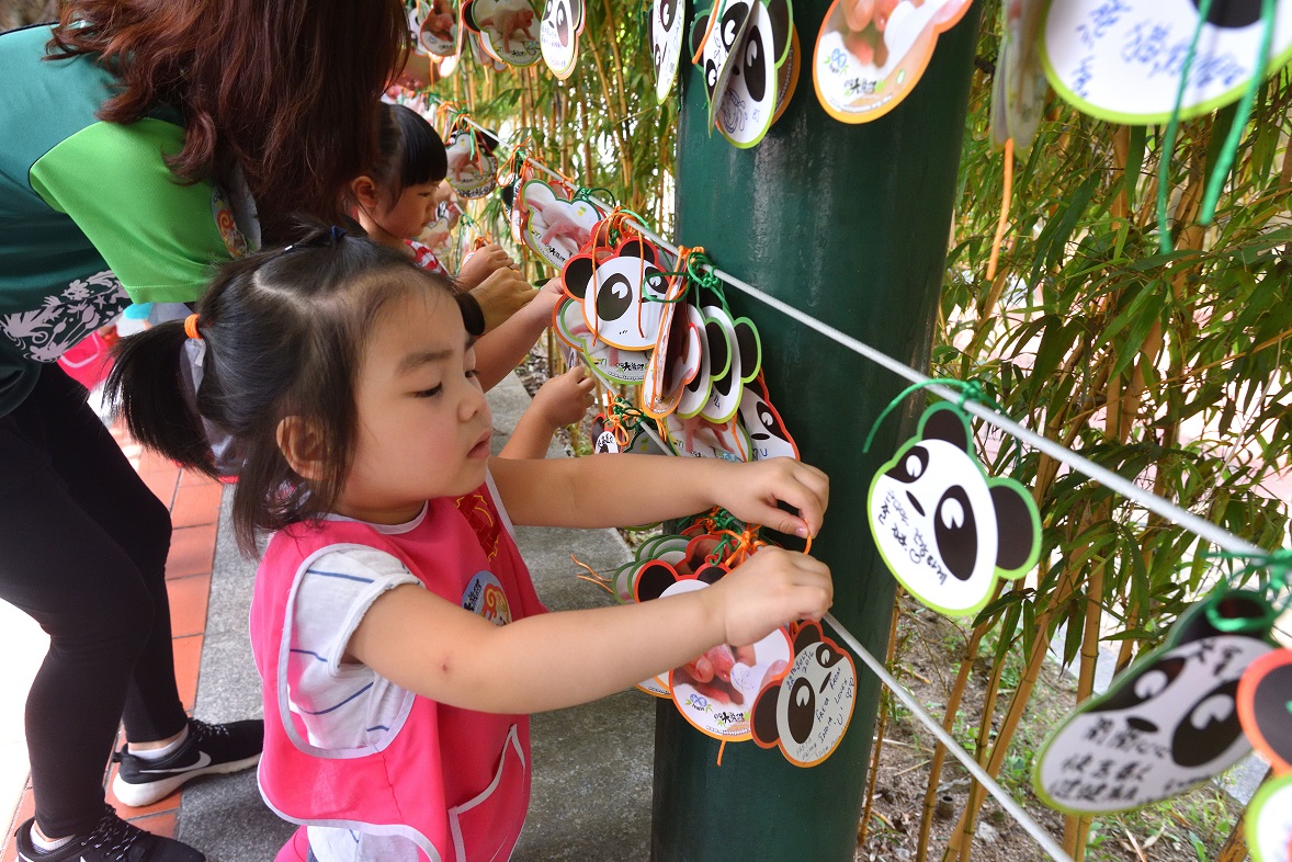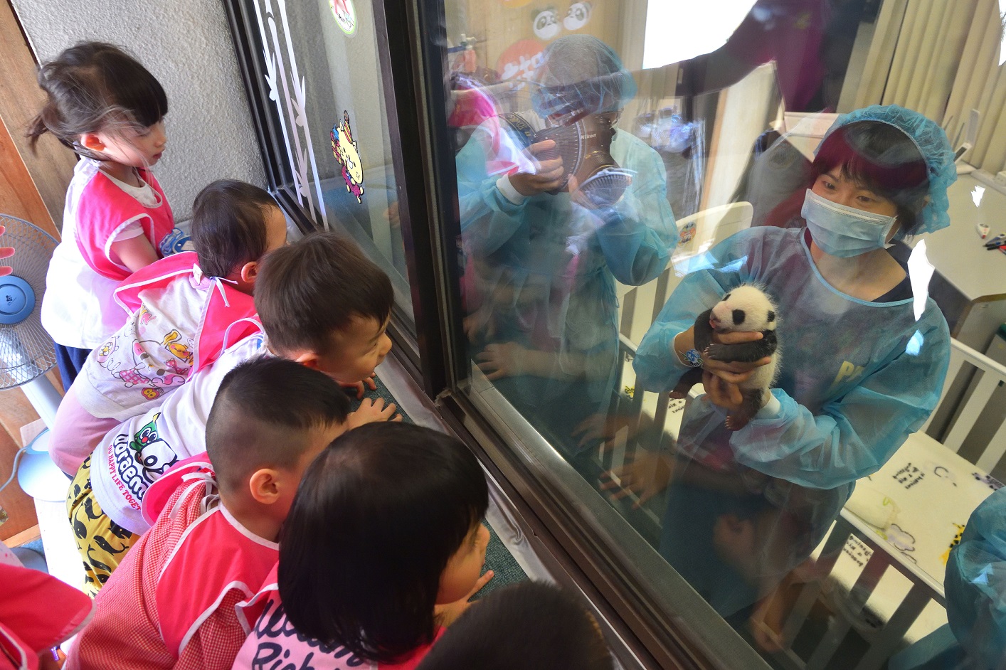 為了慶祝“大寶”“小寶”滿月這個喜慶的日子,民署特別邀請三十多名就讀托兒所的小朋友,到石排灣郊野公園為 “大寶"“小寶"進行滿月慶祝活動,包括由小朋友書寫心意卡掛在許願牆上以表達祝福,參觀澳門大熊貓館探望大熊貓爸爸“開開",以及分批到後勤地區透過特設的觀察窗近距離觀看“大寶"“小寶"的生活狀況,一同見證及分享大熊貓寶寶滿月的喜悅。