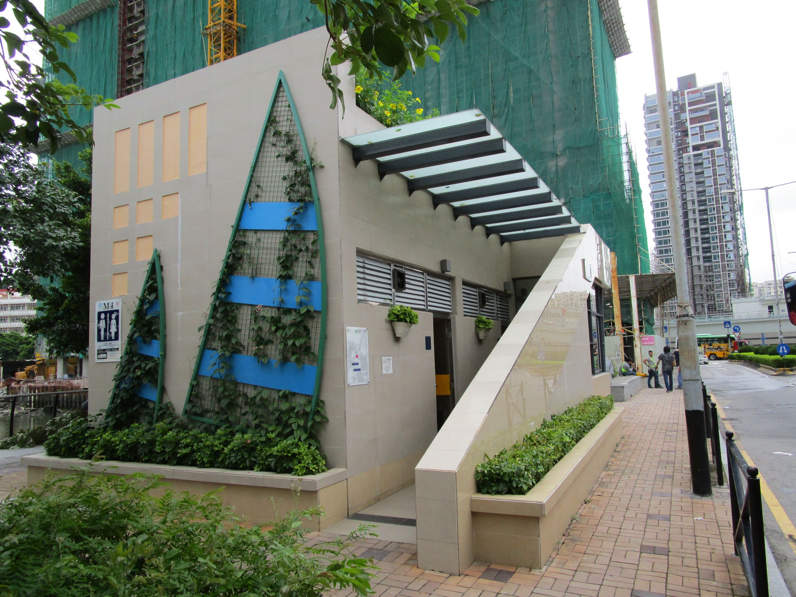 另外,澳門地狹人稠,可供發展綠化的地方不多,因此,在公廁的外牆及天台會預留位置種植攀爬植物及設置花槽,並在室內放置植物盆栽,創造更多綠化環境,進一步使公廁內外的綠化設施與四周的綠化帶相互結合,有助提昇公廁內外的美觀及淨化室內空氣,提高公廁降溫散熱的效益,同時增加都巿綠化覆蓋率。