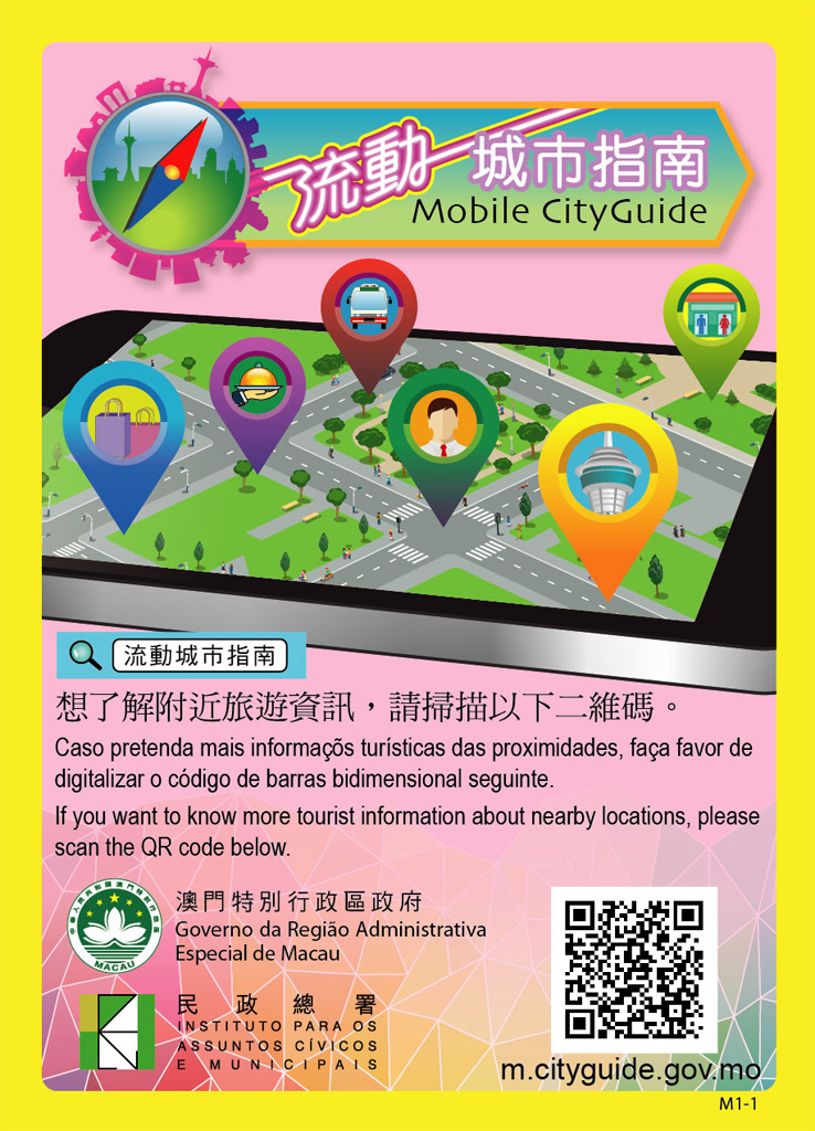 “流動城市指南"的內容豐富,備有中文繁體、中文簡體、英文及葡文四種語言。如想對本澳各區域的資訊有更深入瞭解,可瀏覽“流動城市指南"http://m.cityguide.gov.mo/即有詳細資料可供參閱。