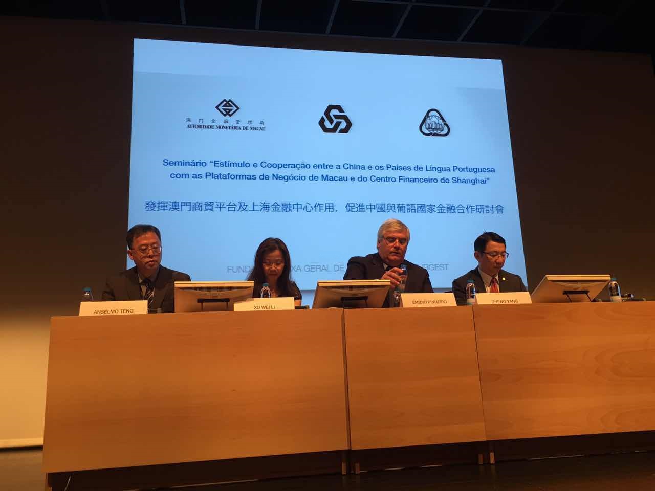 根據滬澳金融合作備忘錄的精神與共識,澳門金融管理局與上海金融服務辦公室日前赴葡,聯合在里斯本舉行了研討活動,向當地金融機構及商業企業介紹了澳門與上海的相關情況,特別是澳門“中國與葡語國家商貿合作服務平台”的功能以及上海國際金融中心的建設,以推動及促進中國內地、澳門特別行政區與葡語國家之間的金融合作。