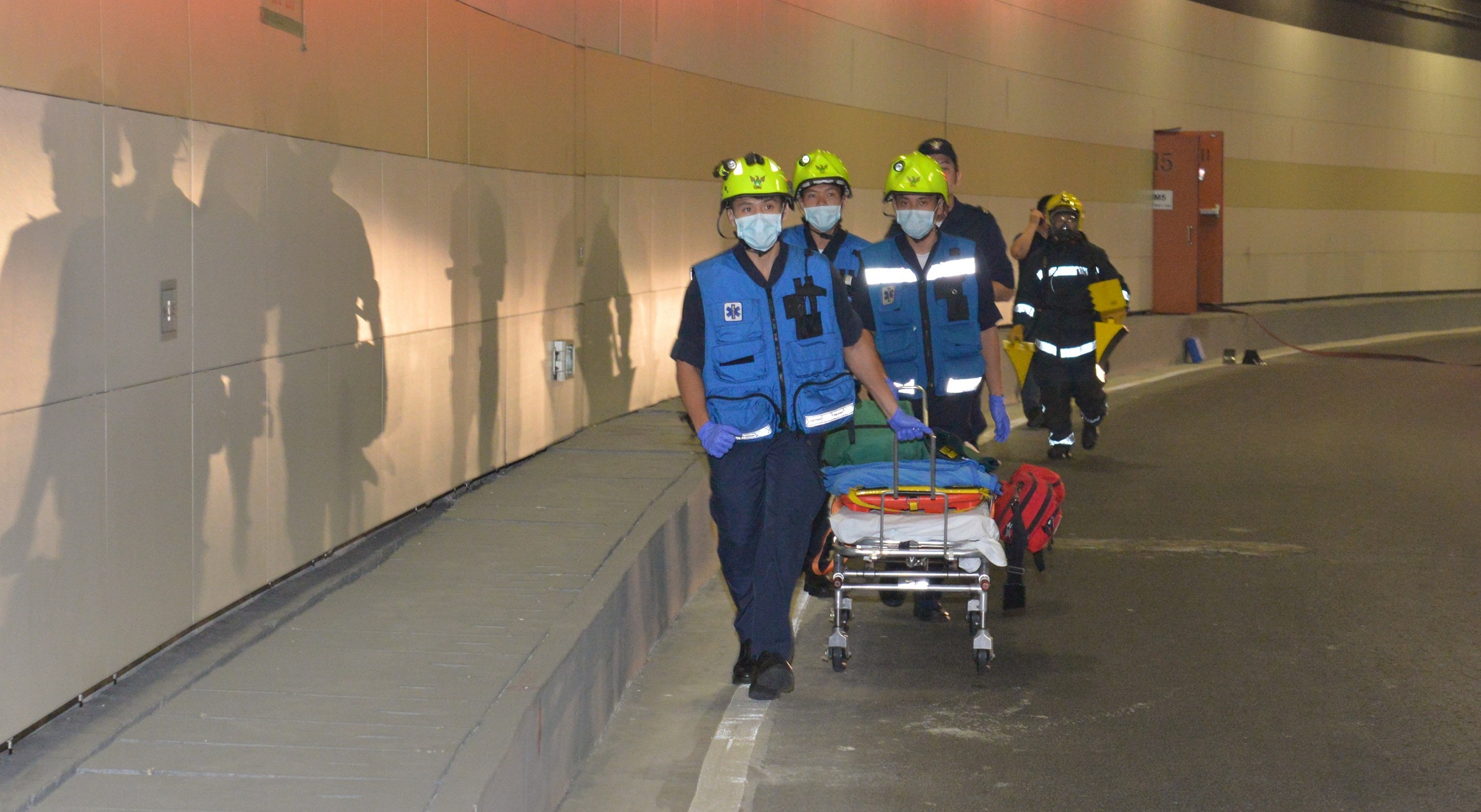 演習模擬於橫琴往氹仔方向隧道內有三輛私家車發生碰撞,並且引致中間的私家車冒煙起火,有一名司機被困車內。消防局接到報警後,立即按照有關預案派出救援車輛到達現場,展開救援、滅火及疏散工作。