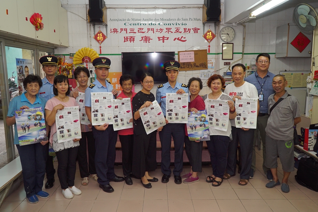 消防局於9月28日及10月5日,派出消防局官員拜訪“三巴門坊眾互助會”及“氹仔坊眾聯誼會”,座談中消防局代表介紹了重陽節的防火、救護及安全使用燃料的宣傳工作、行動部署等,了解社區的消防安全情況、雙方就該區的防火、滅火及救援等工作進行討論並交換意見,特別要求他們向會員呼籲進行登高祭祀活動時注意防火安全;另外,亦於9月28日及將於10月7日為“三巴門坊眾互助會”及“民眾建澳聯盟”分別舉辦兩場防火及救護知識講座,希望藉此能提高市民的防火及救護知識。