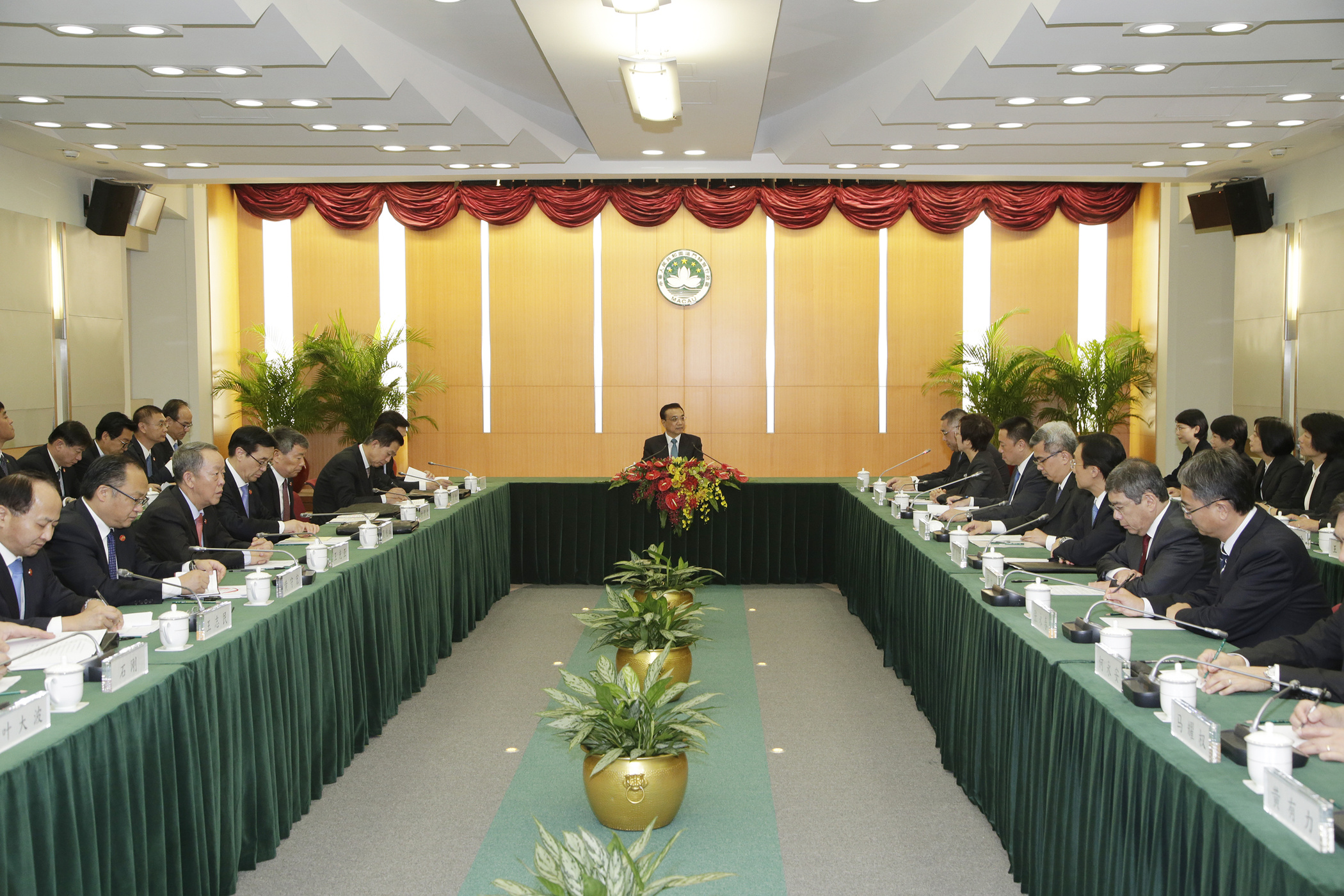 總理李克強今(10日)午在政府總部,聽取特區政府工作匯報。他表示,中央政府對澳門特區政府的工作充分肯定,最近研究出台了支持澳門發展的19項措施,目的就是為澳門的經濟社會發展助力,保持澳門長期繁榮穩定。 總理向行政長官崔世安等特區政府主要官員稱,較早時間登上觀光塔遠望時,看到的不僅是澳門現代化建設的繁榮景象,更看到一個多元文化的城市,相信定能實現經濟適度多元發展的目標;他更看到澳門空間發展有着美好的前景。 總理指出,近年來由行政長官崔世安領導的特區政府,帶領澳門同胞認真貫徹“一國兩制”、“澳人治澳”、高度自治的方針,並嚴格按照《基本法》辦事,秉承以人為本、科學決策的理念,應對了諸多困難和挑戰;奮發有為,在推動經濟適度多元發展方面、在保持社會和諧穩定方面,都做了大量、卓有成效的工作。中央政府對澳門特區政府的工作充分肯定。 李克強總理又談到,今年上半年特別是近兩個月,澳門經濟發展的一些新變化,使人們對澳門明年及未來更充滿信心。他又肯定公務員隊伍做了大量辛勤、努力的工作,在此向他們轉達中央政府的問候。 總理強調,中央政府將一如既往支持澳門經濟適度多元發展,保持澳門長期繁榮穩定。最近中央政府研究出台了支持澳門發展的19項措施,目的就是為澳門的經濟社會發展助力,保持澳門長期繁榮穩定,造福澳門同胞。祖國始終是澳門的堅強後盾。 崔世安在匯報時稱,在中央政府的指導支持下,第四屆澳門特別行政區政府履職以來,全面貫徹“一國兩制”、“澳人治澳”、高度自治方針,嚴格落實《澳門基本法》,始終堅持“以人為本,科學決策”的施政理念,穩步推動經濟適度多元發展,公共財政維持穩健,各項民生措施全面落實,保持了經濟社會整體大局的和諧穩定。 他說,今年國家出台了第十三個五年規劃綱要,這些國家發展的新理念、新思路,正正激發了澳門要把握機遇、創新發展的活力。特區政府於9月上旬公佈了首份“澳門特區五年發展規劃”,其中包括對接國家“十三五”規劃、參與和助力“一帶一路”建設、打造中葡合作平台。規劃兼顧了澳門短、中長期的發展需要,特區政府有信心、有決心引領未來五年的科學發展和協調發展,提高澳門的綜合競爭力,發揮澳門的獨特優勢,為“一國兩制”偉大事業作出貢獻。