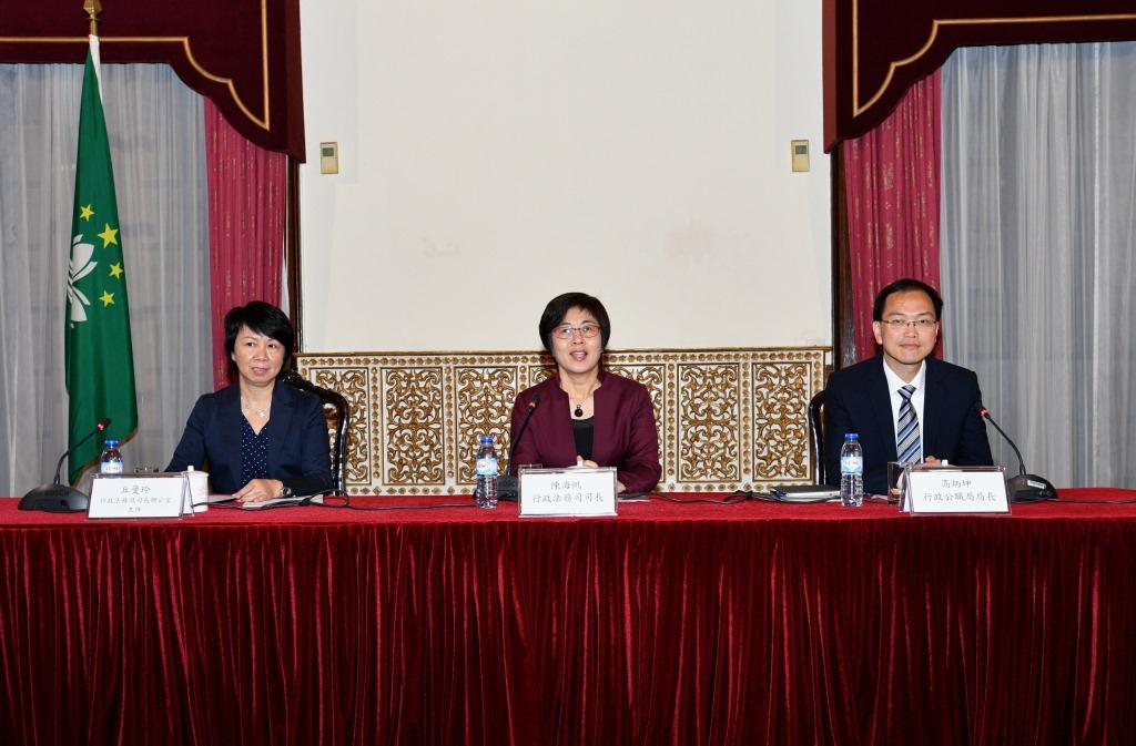 陳海帆司長首先感謝各社團機構長期以來為澳門的發展出謀獻策,並對施政工作給予的大力支持與協助,其後,與會的行政法務範疇各部門領導分別介紹了在重整部門職能、完善招聘制度、推動電子政務、優化網上服務、逐步落實統籌立法、加強法制建設及加強民生事務等方面所開展的一系列工作。