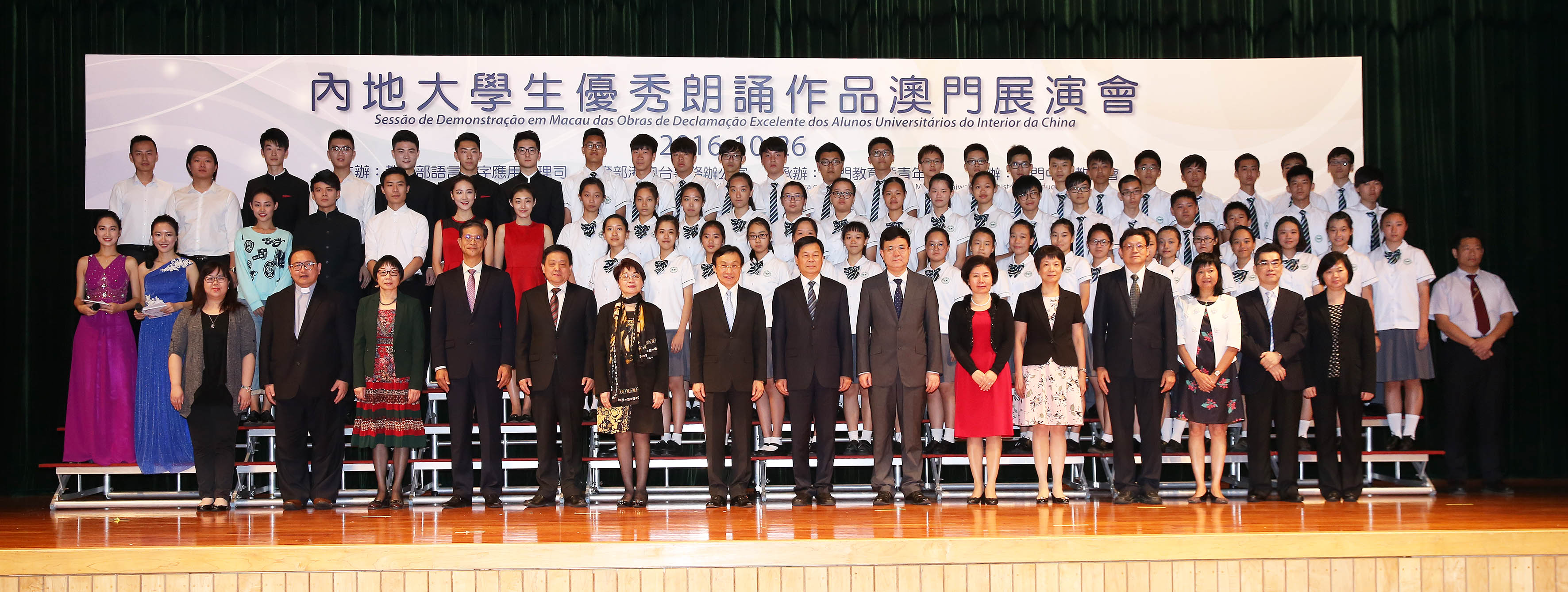 由國家教育部語言文字應用管理司與港澳台事務辦公室主辦,教育暨青年局承辦,澳門中華教育會協辦的“內地大學生優秀朗誦作品澳門展演會”於2016年10月26日下午3時至5時假教業中學禮堂舉行,中國傳媒大學、重慶大學學生通過朗誦、配音、繞口令等方式呈現了語言藝術高超的表演技巧。主辦單位希望,透過優秀朗誦作品的表演,展現朗誦藝術的美感,推廣普通話學習,促進兩地青少年的交流。