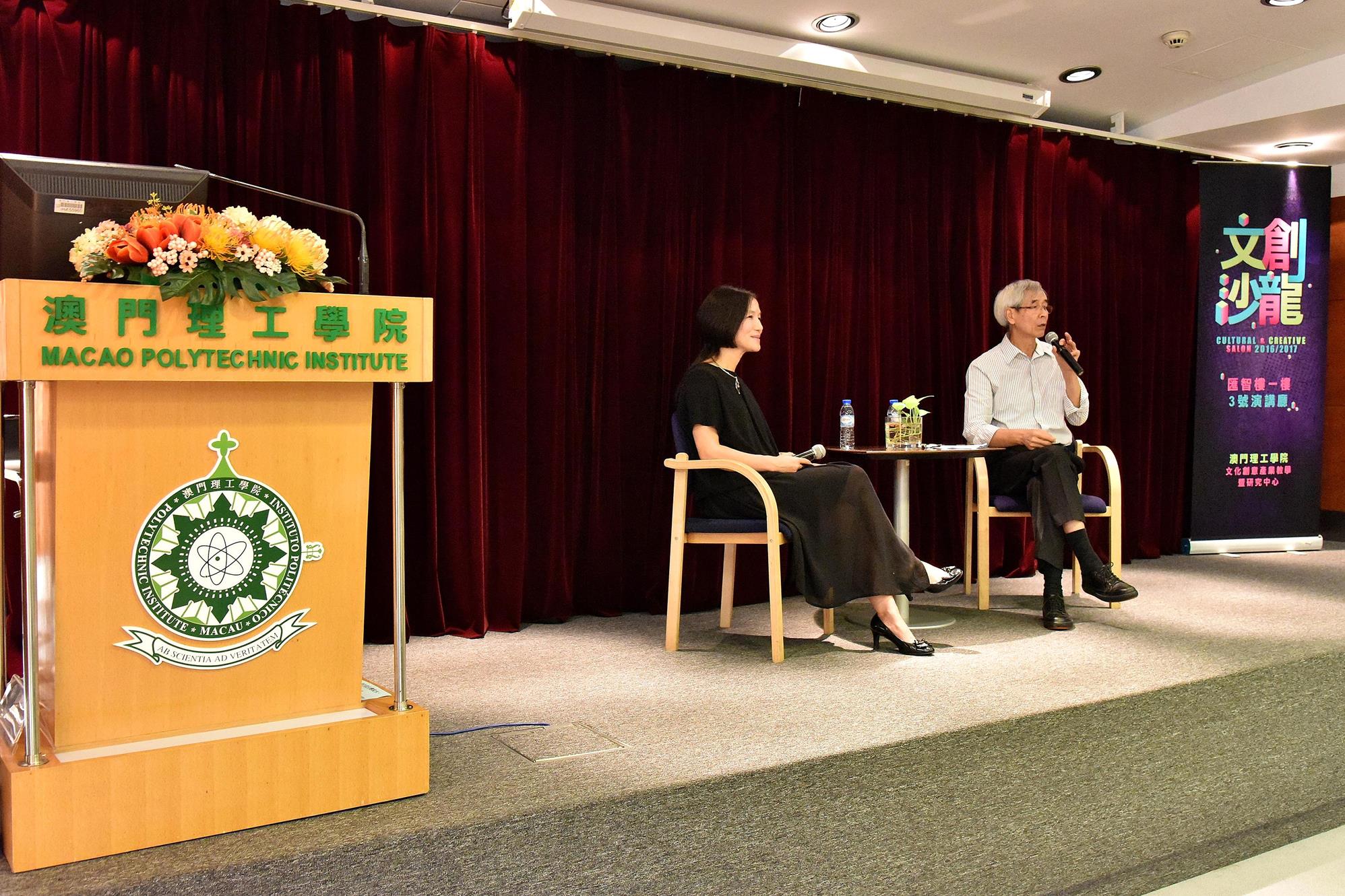 澳門理工學院於10月25日假匯智樓演講廳舉辦以《社區特色文創的打造》為題的文創沙龍,邀請了澳門文化產業基金行政委員會梁慶庭主席擔任主講嘉賓,並由理工學院藝術高等院校徐秀菊校長主持。梁慶庭介紹了文化產業基金的工作並分享了澳門不同的社區特色,以及社區文化與文創結合發展的機遇。
