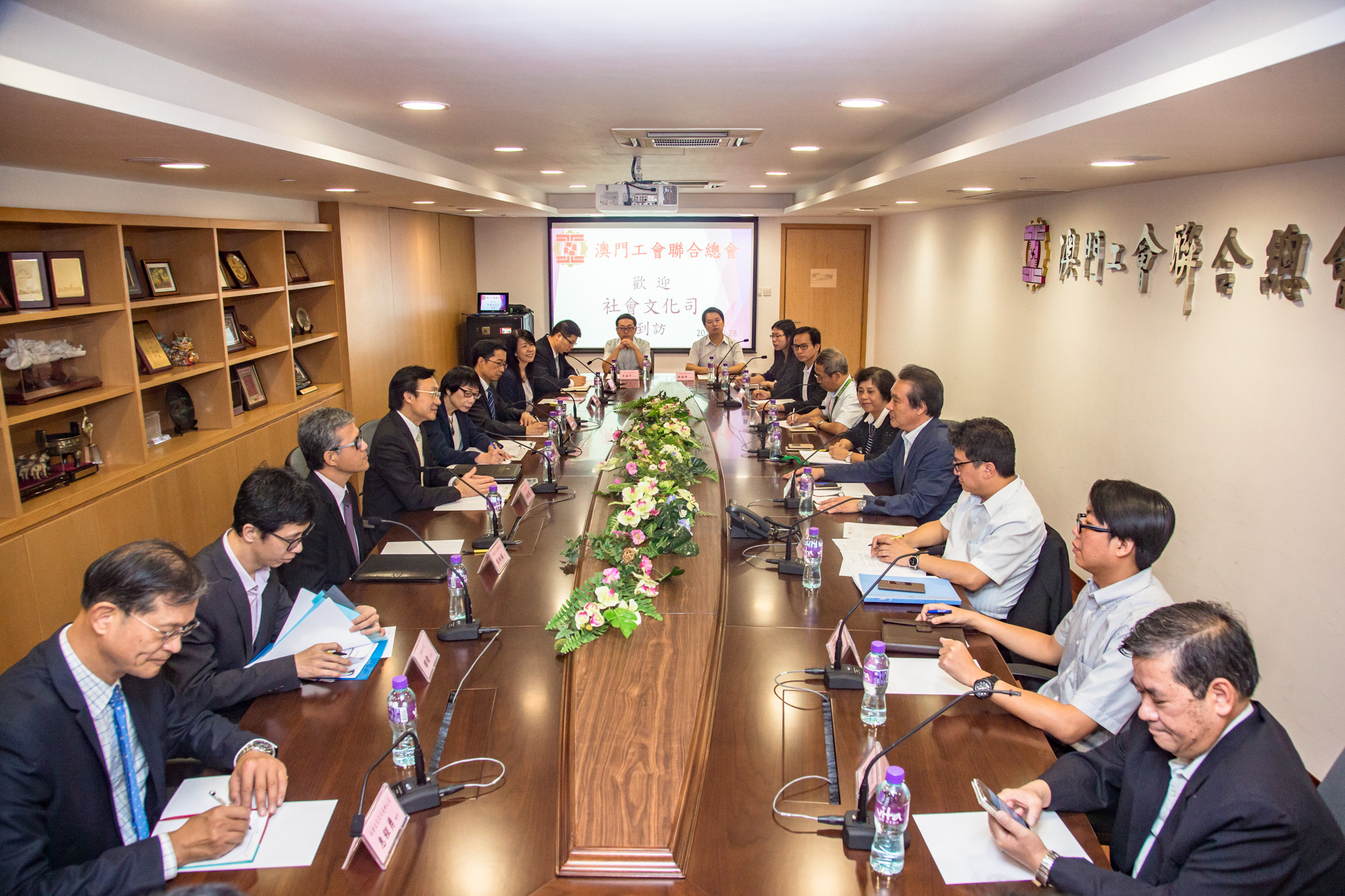 連日來,社會文化司司長譚俊榮率多位局長及工作團隊先後拜訪澳門街坊會聯合總會、澳門工會聯合總會、澳門婦女聯合總會、澳門歸僑總會,亦與多個社會服務機構代表、青年社團代表分別舉行座談,聽取和收集社會文化司範疇明年施政的意見和建議。