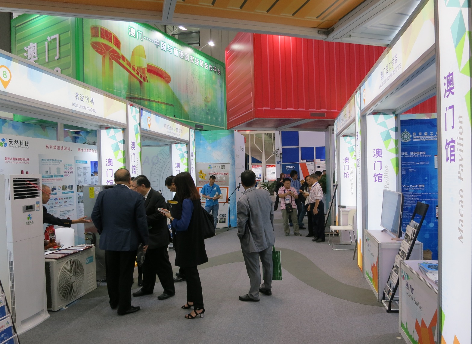 澳門展區設計以四個不同顏色的貨櫃作頂棚,色彩鮮明,寓意澳門全力推動發展中國與葡語國家經貿平台,以及邁向世界旅遊休閒中心的目標。