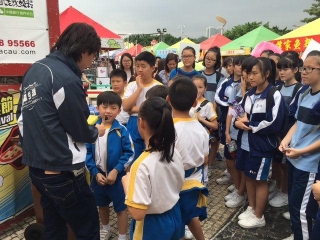 環境保護局藉著「第十六屆澳門美食節」期間舉辦「環境保護局吉祥物與您暢遊美食節」活動,組織「綠色學校」約40位師生及家長參加,於美食節活動現場進行一場極富趣味的環保教學,向年青一代推廣“源頭減廢”等環保訊息。
