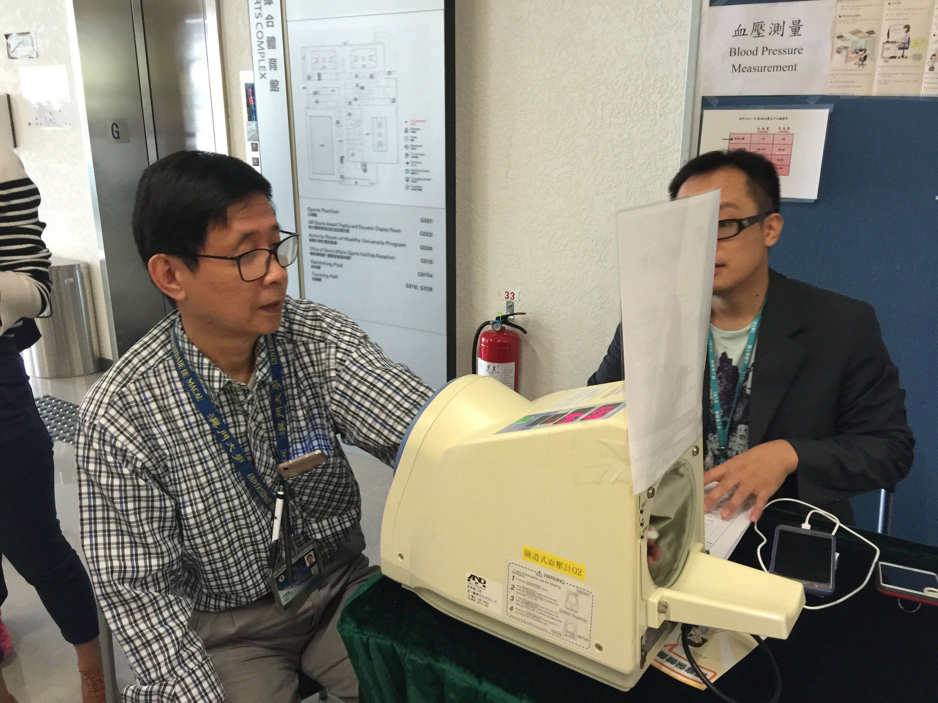 啟動儀式還包括健康大使就職儀式、太極表演、健康操及攤位遊戲等。健康科學學院研究生陳暢表示:“平時很少去醫院檢查身體,通過今天活動的攤位了解到自己的身體狀況,現場工作人員也就一些常見指標如血糖、血壓、體脂給予建議,很實用。”澳大職員梁寶葉表示:“以前不知道自己的血糖含量,今天透過測試知道自己血糖量正常,覺得非常開心。工作人員也給我一些健康飲食的建議。”
