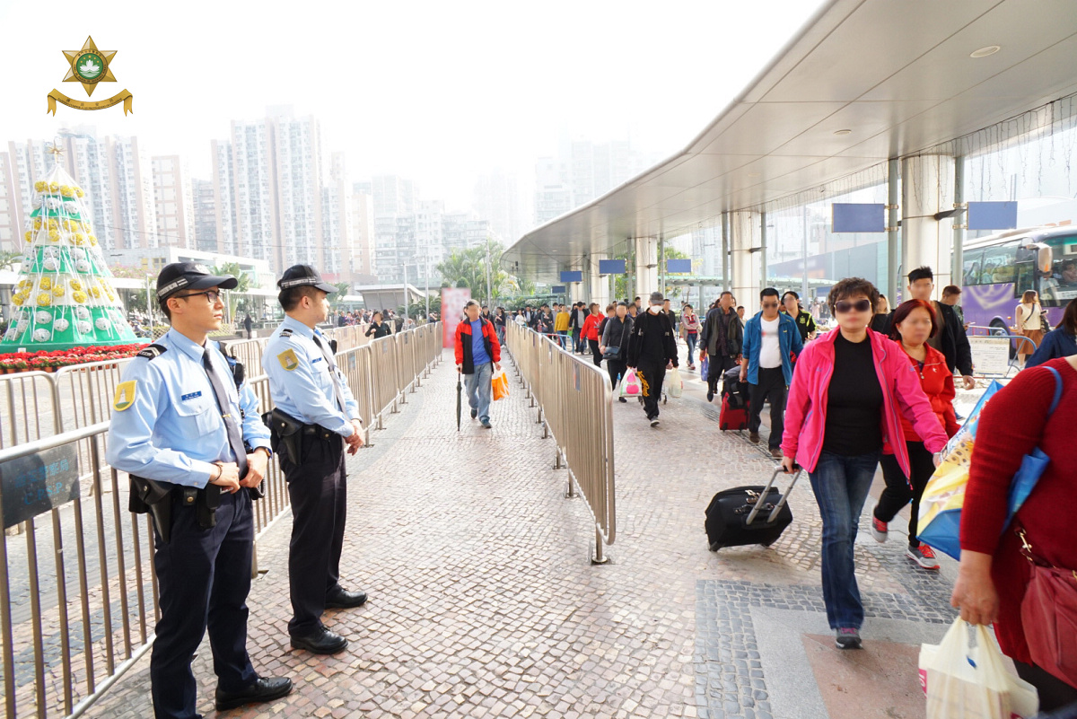 聖誕節假日期間(24至27日),市面人流絡繹不絕。為了保障公眾安全,治安警察局針對旅遊旺區和本澳舉辦各大小型活動之地點,加派警員維持市面秩序,並於人潮高峰期採取適當疏導措施。