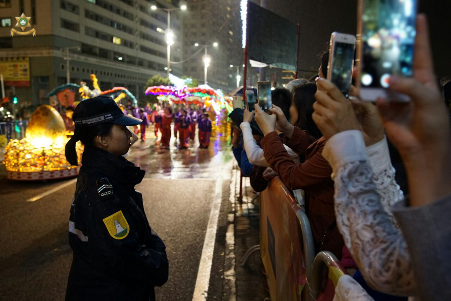 此外,梁文昌局長還到了轄下其他部門作巡視慰問,以及大年初三晚上七時許,沿雞年花車巡遊匯演的路線巡視,向參與巡遊的治安警察局舞蹈隊致以鼓勵和祝福;