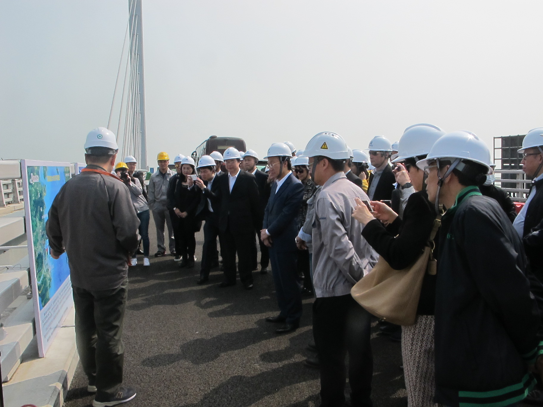 參觀期間,韋東慶詳細解釋了港珠澳大橋的結構構造、技術挑戰、施工進度,以及將來珠澳口岸人工島的整體規劃和出入境安排等,預計今年年底大橋將具備通車條件,正式投入使用的具體日期須待三地政府協商後再行訂定。