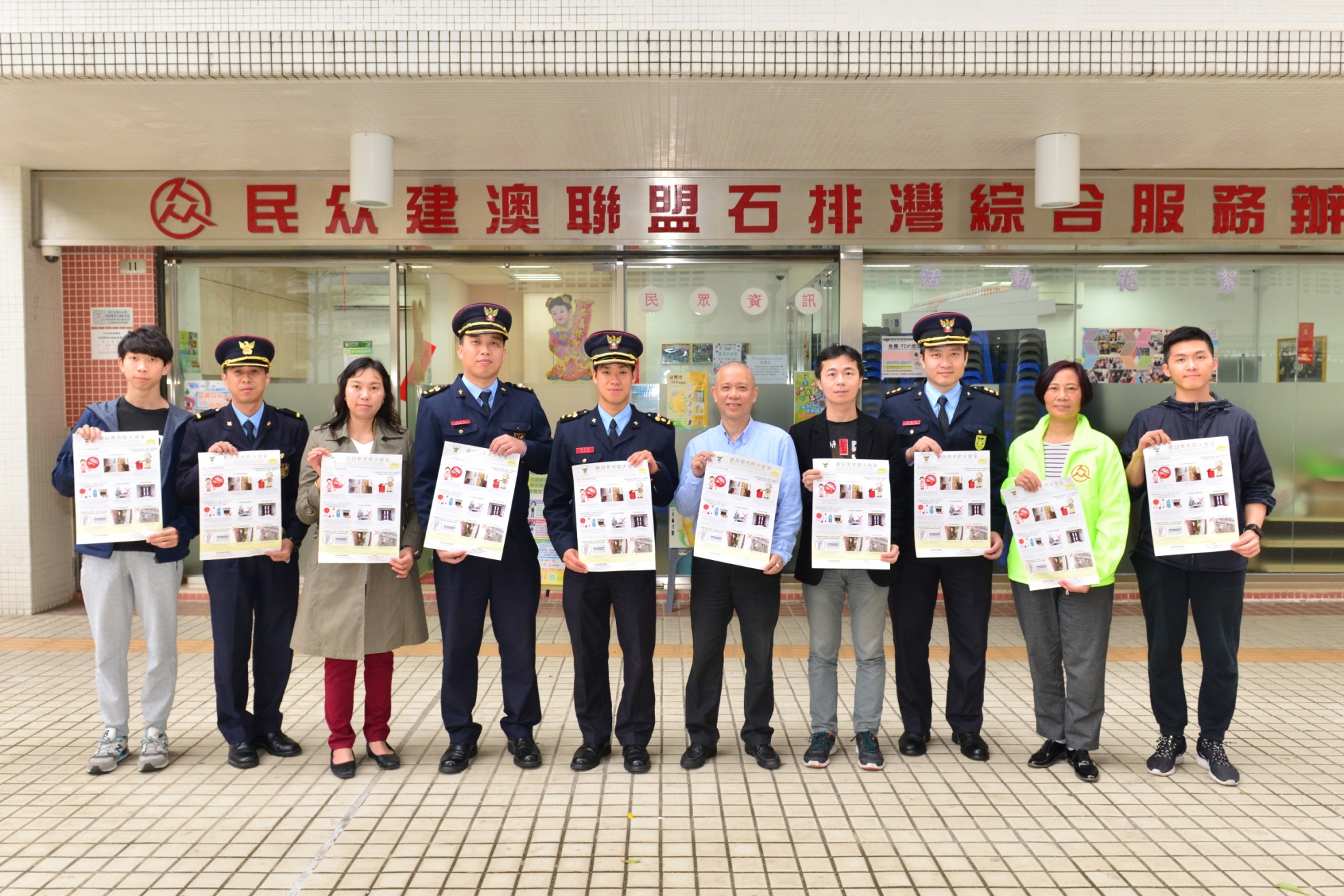 消防局於清明節前夕分別拜訪“民眾建澳聯盟石排灣辦事處”、“筷子基坊眾互助會”及“新橋區坊眾互助會”,座談期間本局介紹了清明節的防火宣傳工作及行動部署,並就防火、滅火及救援等工作的交換意見,及後聯同其會員、義工一同到區內派發宣傳單張及張貼海報;同時亦為“南區四坊會頤康中心”、“民眾建澳聯盟石排灣辦事處”、“筷子基坊眾互助會” 、“新橋區坊眾互助會”及區內一帶居民進行防火、救護及燃料安全講座,從而強化區內居民的消防安全意識。