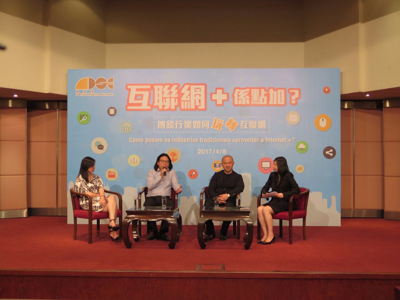 經濟局於4月8日假澳門世界貿易中心五樓蓮花廳舉辦“互聯網+係點加?-傳統行業如何玩轉互聯網”講座。參與人士反應熱烈,吸引了近250名青年及工商業界人士參與。