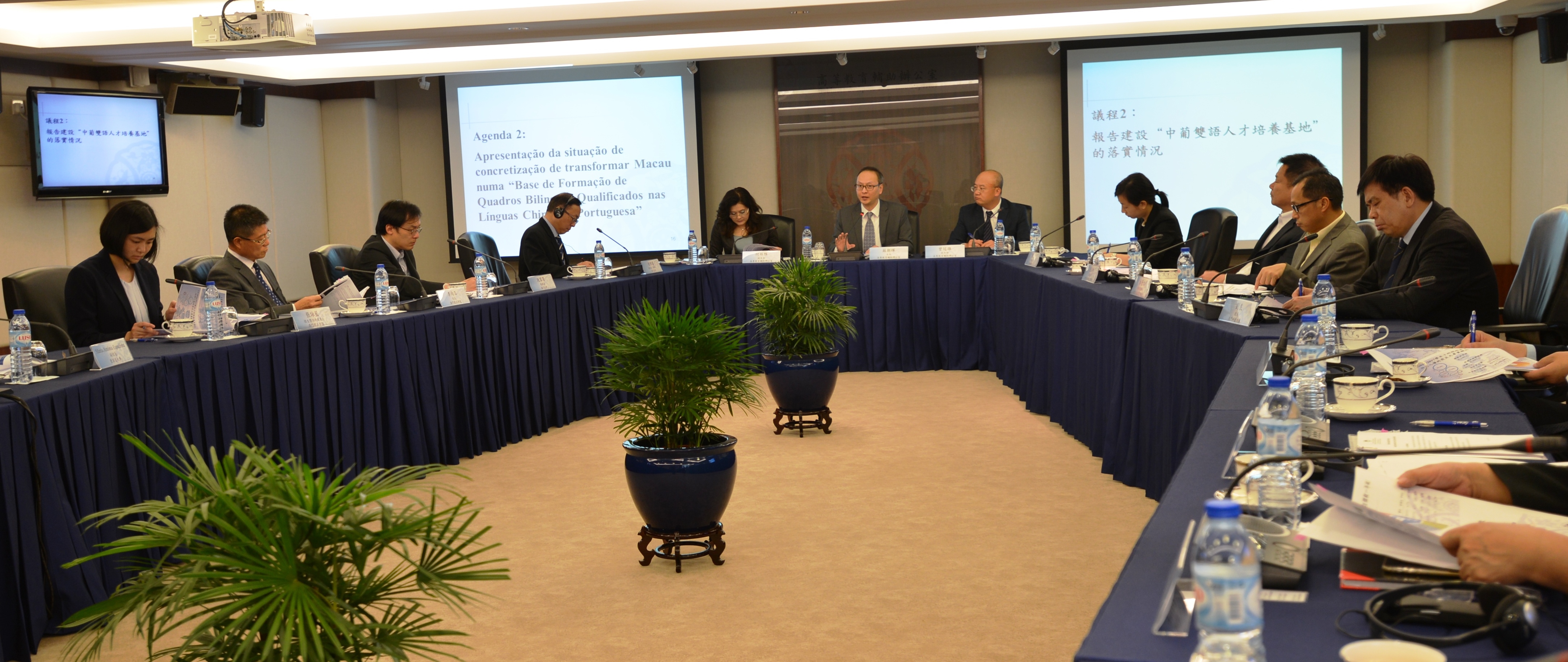 高教辦介紹了本澳高校中葡雙語人才培養的現況。2016/2017學年修讀葡語相關專業課程的學生有1,179人,修讀各類葡語選修或葡語暑期課程的註冊學生人數有2875人次。而2015/2016學年在葡萄牙修讀各類專業範疇課程有275人。在建設中葡雙語人才培養基地方面,院校已制定行動計劃,並透過配合各校特色以及與外地院校和機構合作,將從不同層面深化中葡雙語人才培養基地的建設工作,包括師資培訓、葡語教學與研究、中葡旅遊人才培訓、以及漢語教育培訓等。