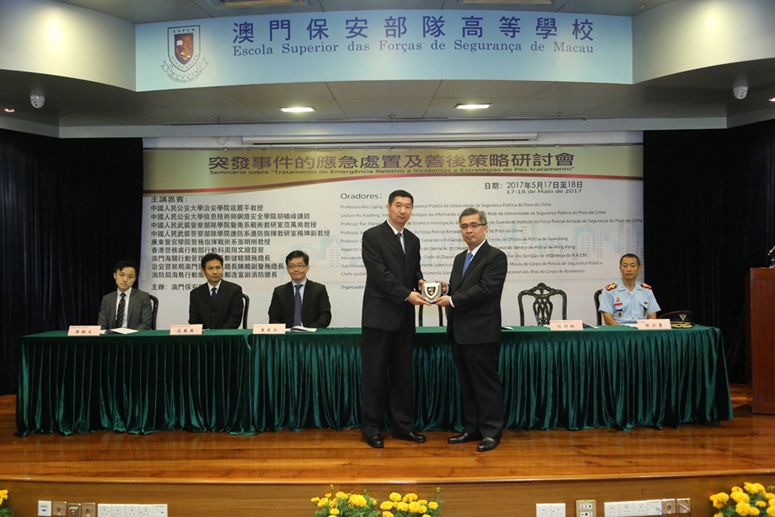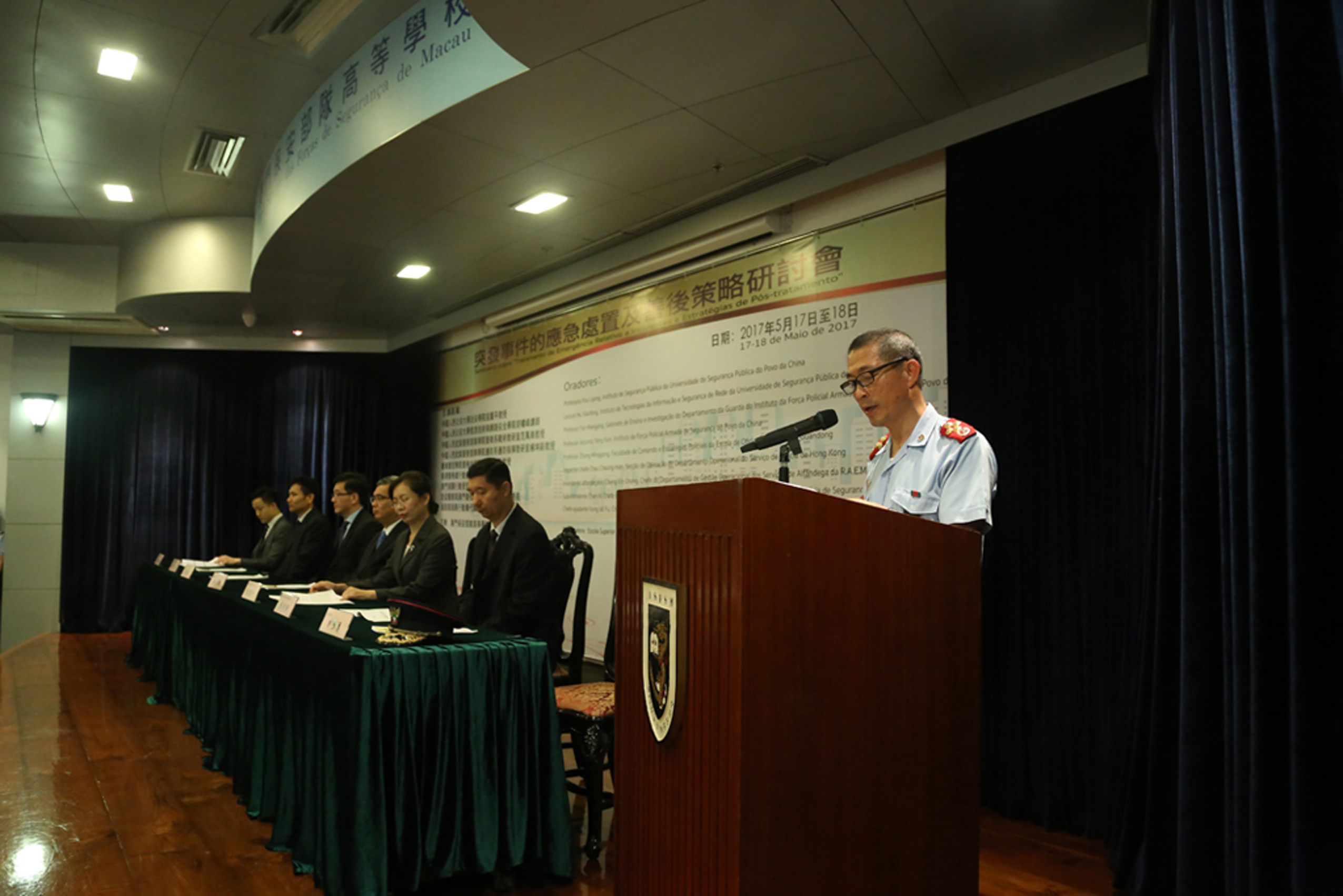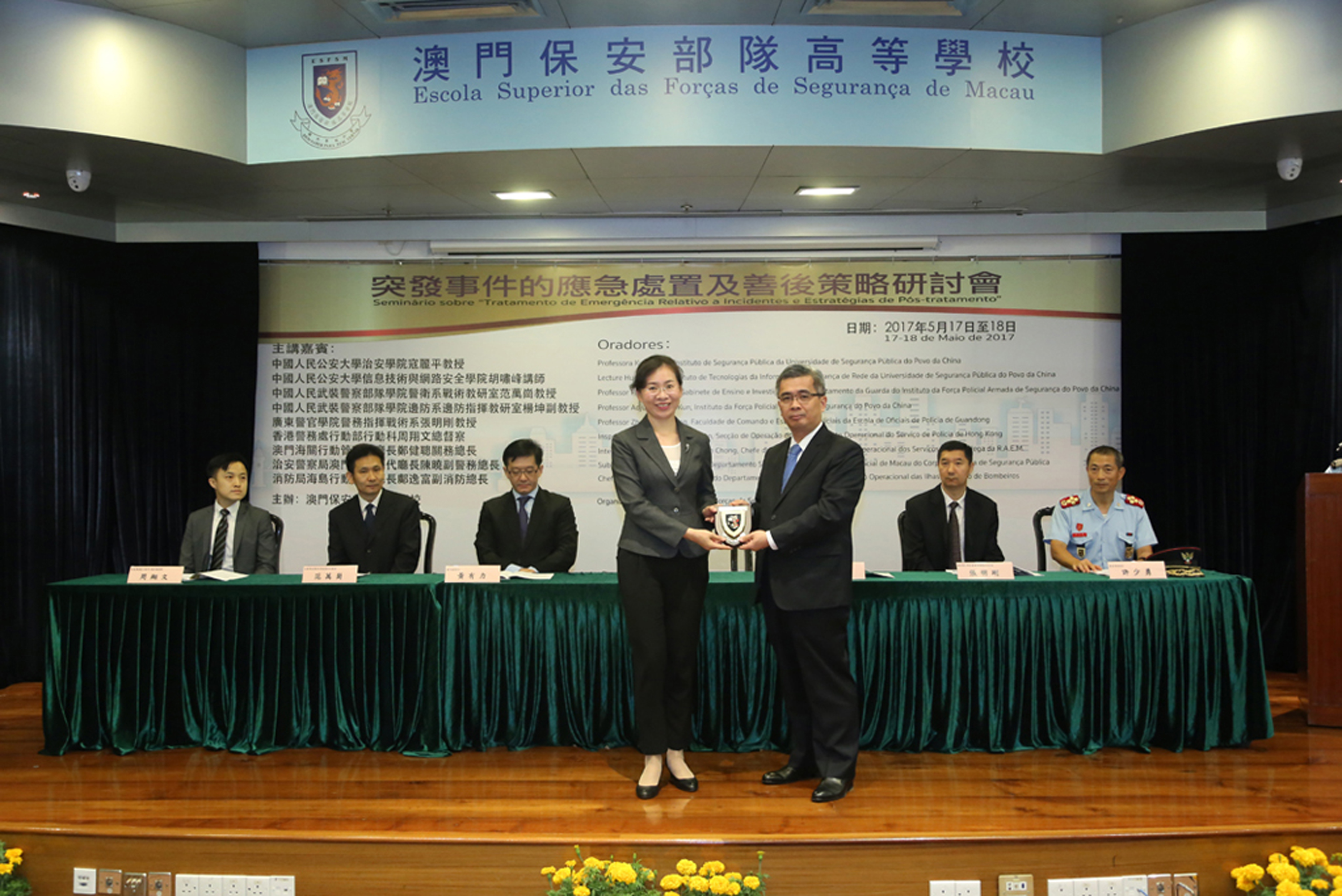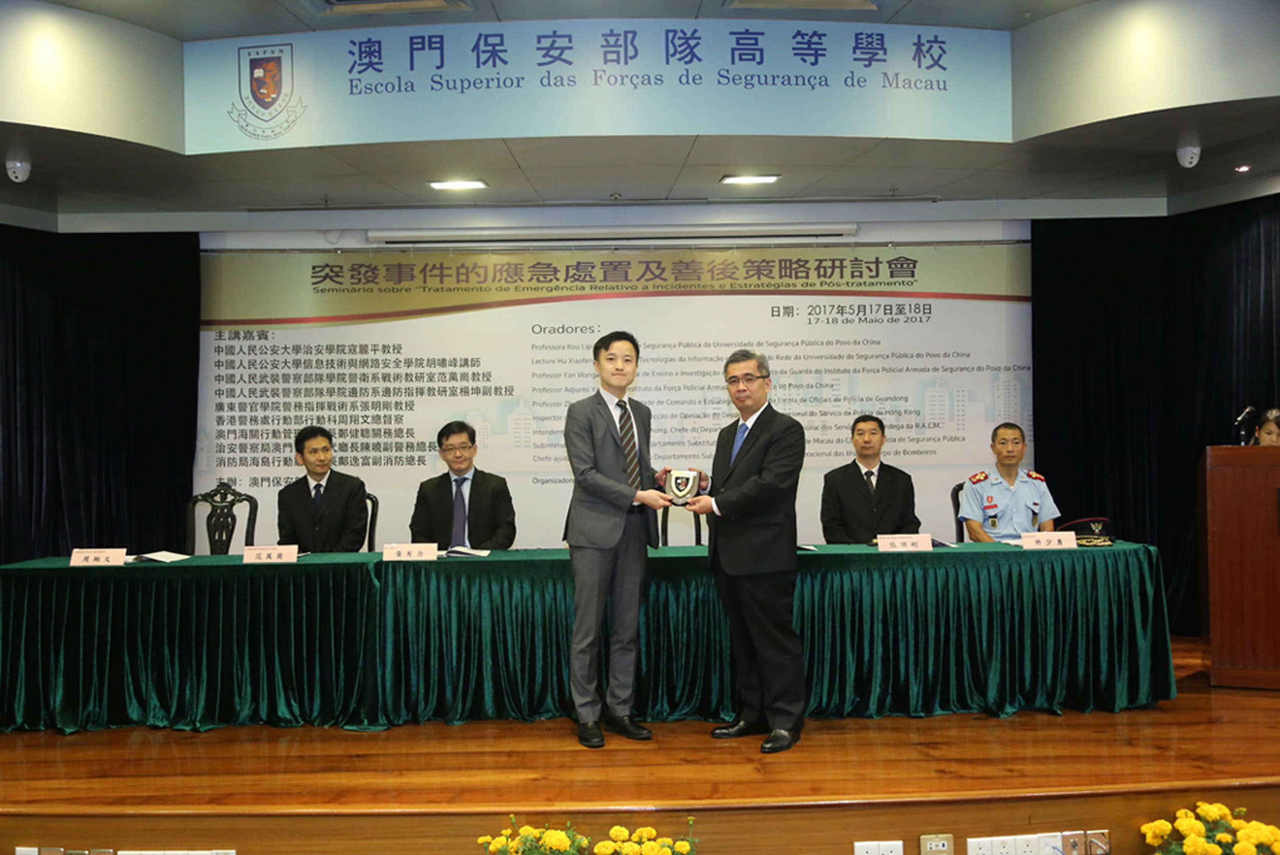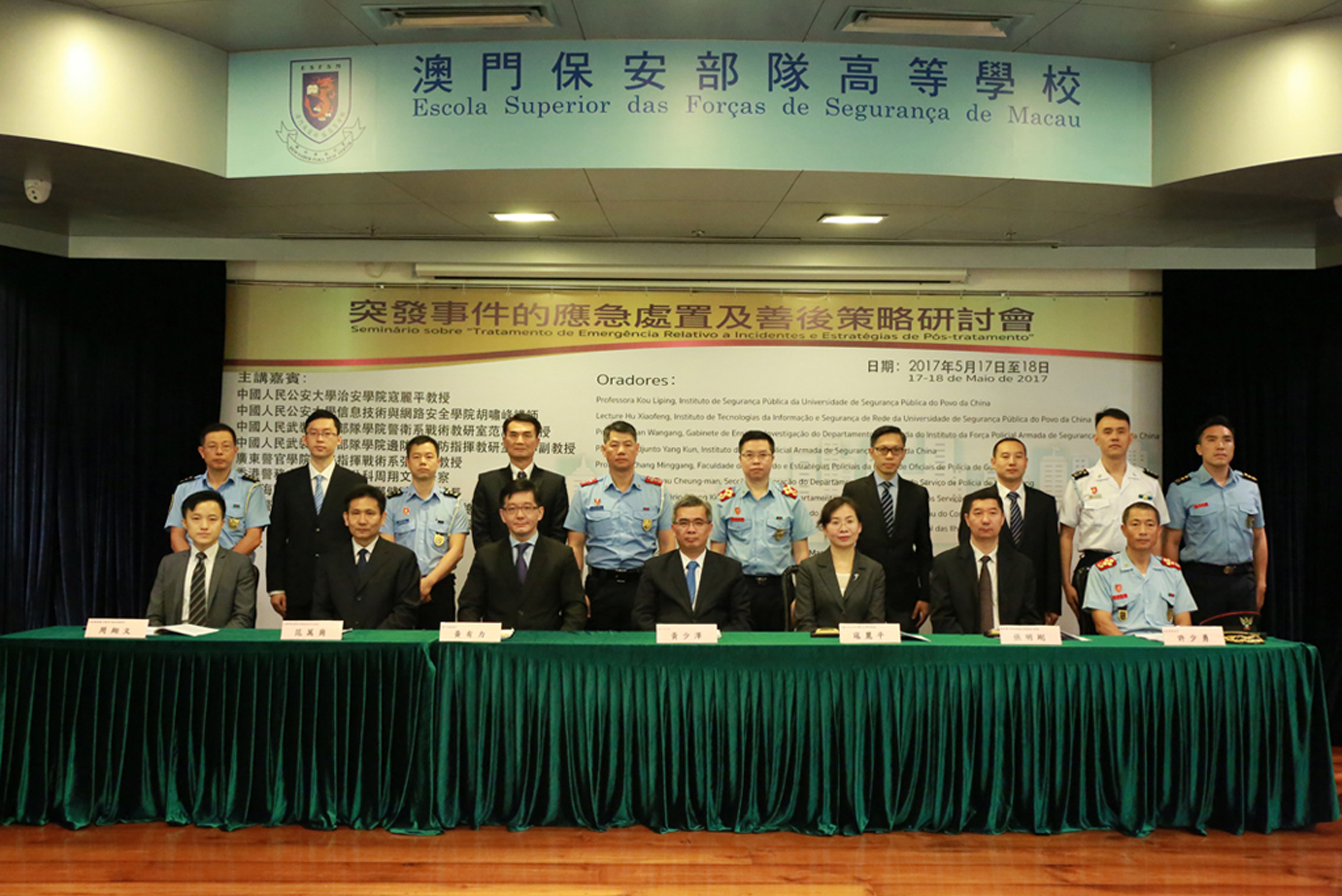 為使澳門保安部隊人員增加對突發事件的應急處置與善後策略方面的知識與經驗,於本年5月17日至18日,澳門保安部隊高等學校以「突發事件的應急處置及善後策略」為題舉辦研討會。研討會分別邀請了中國人民公安大學、中國人民武裝警察部隊學院、廣東警官學院及香港警務處派出專家學者,聯同澳門保安部隊及保安部門的代表擔任主講嘉賓。